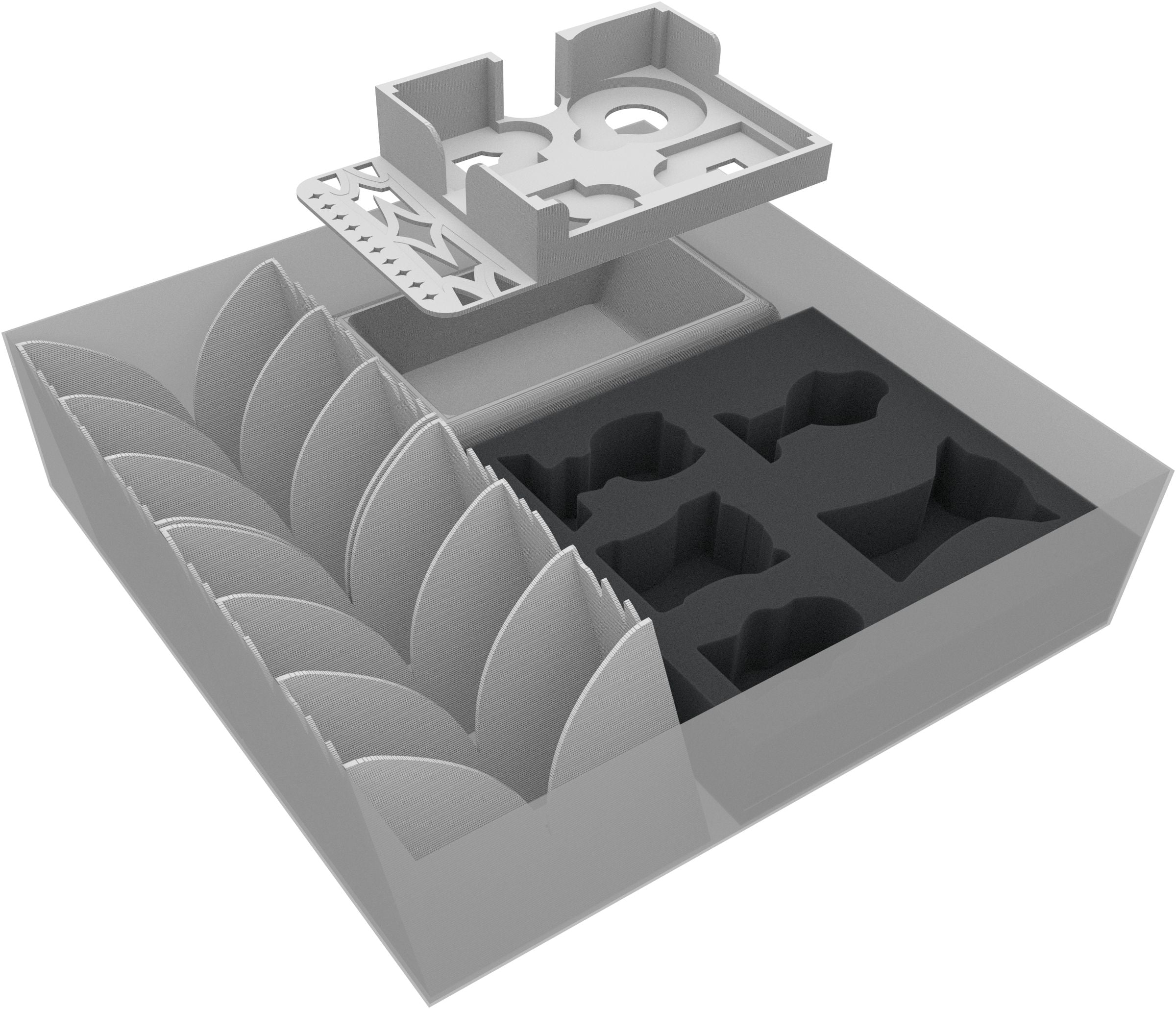 This Organizer replaces the Vault for the Power Tokens with a robust Feldherr plastic token holder. The plastic box also serves to stabilize the foam insert in the board game box. Just like the original Vault, you can use the token holder on the tabletop during the game as a storage place for the Power Tokens.