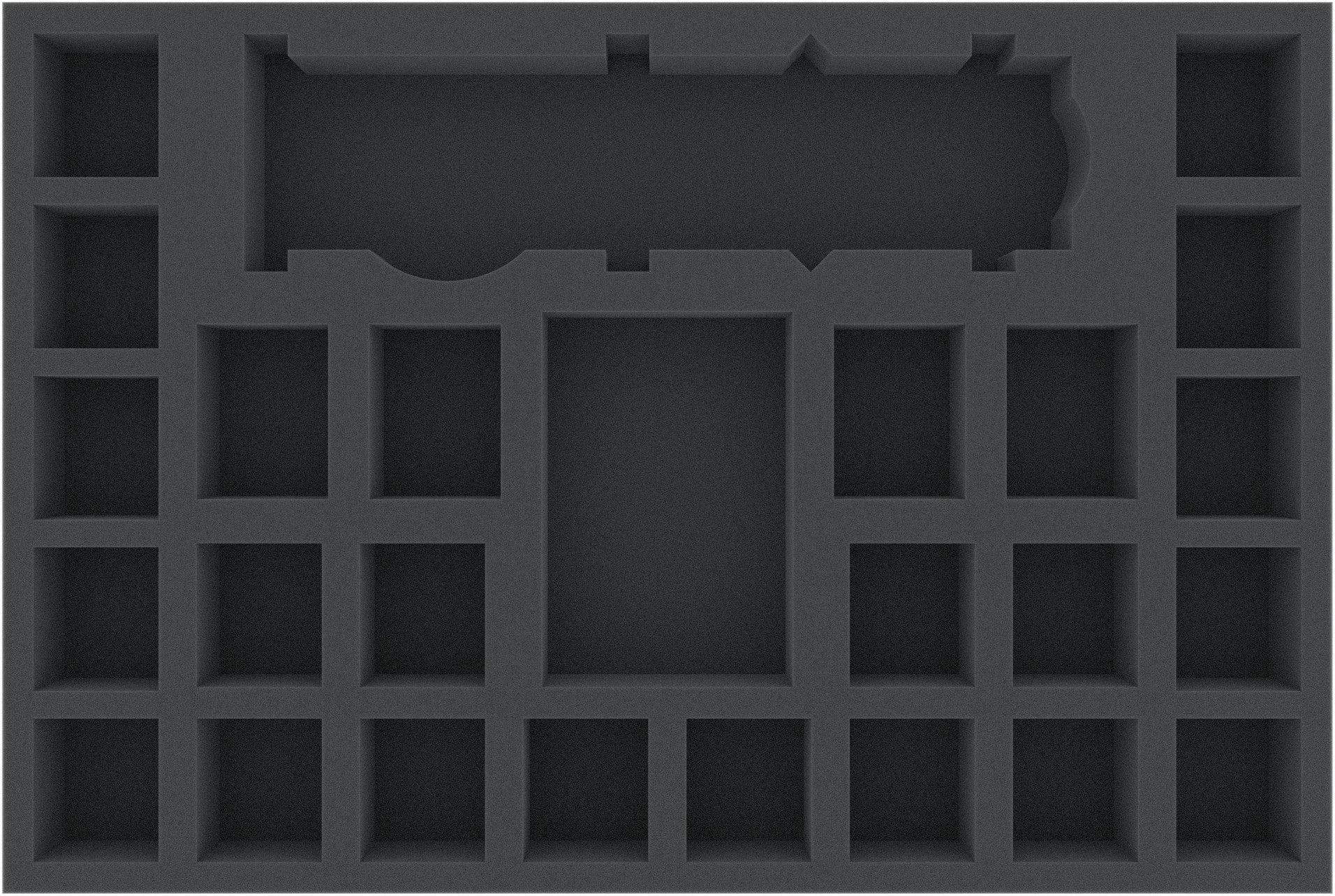 Especially for Blood Bowl 2016 board game box cut foam tray. The foam tray with 26 cut outs large enough for all miniatures from the game and fits perfectly into the original board game box. There is an additional 4 mm foam topper to protect the Blood Bowl 2016 figures.