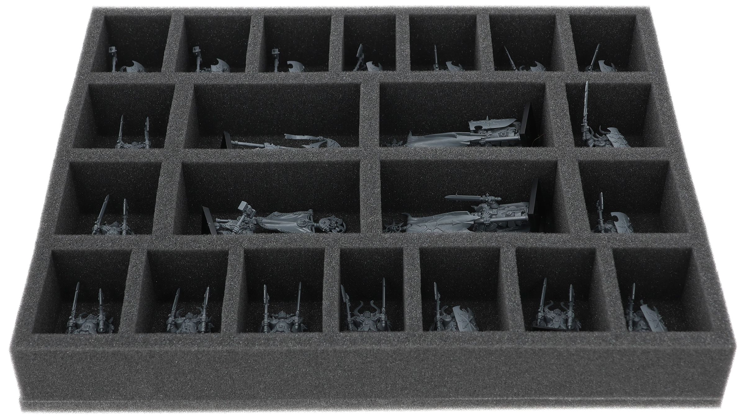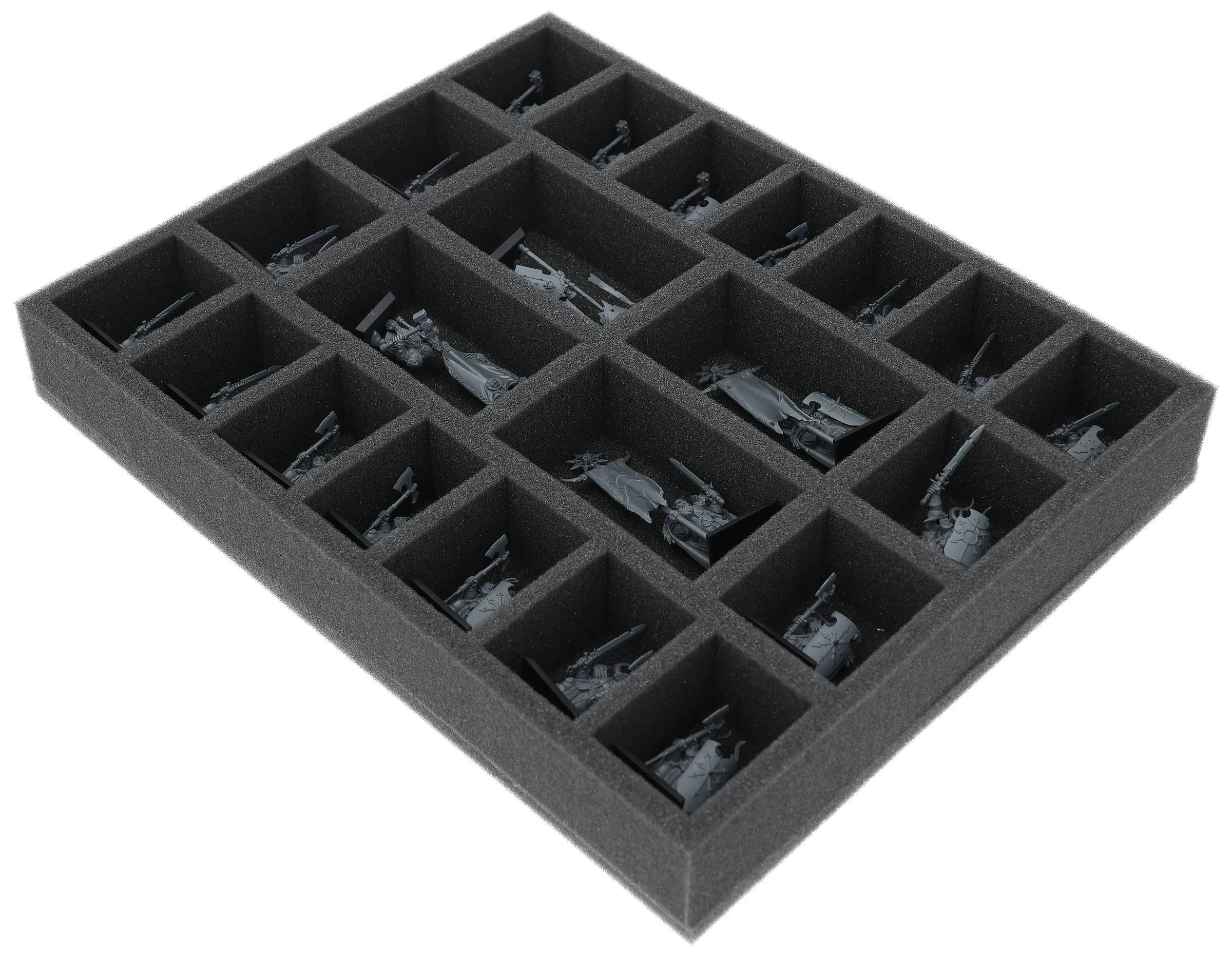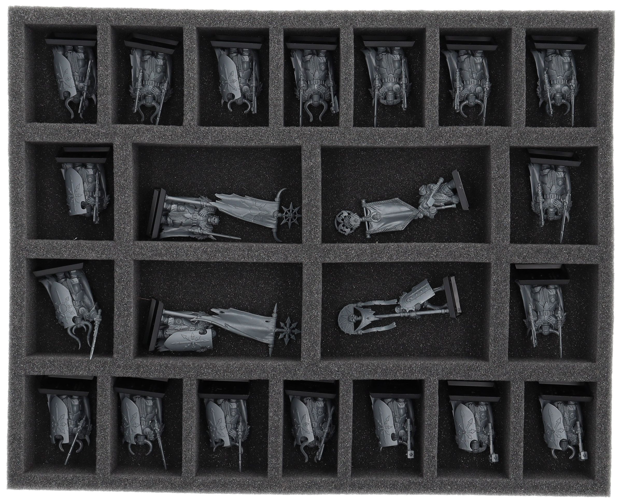 On this Feldherr foam tray you have space for up to 22 miniatures of your army. The insert is especially suitable for storing the Chaos Warriors, Chaos Marauders and similar sized models.