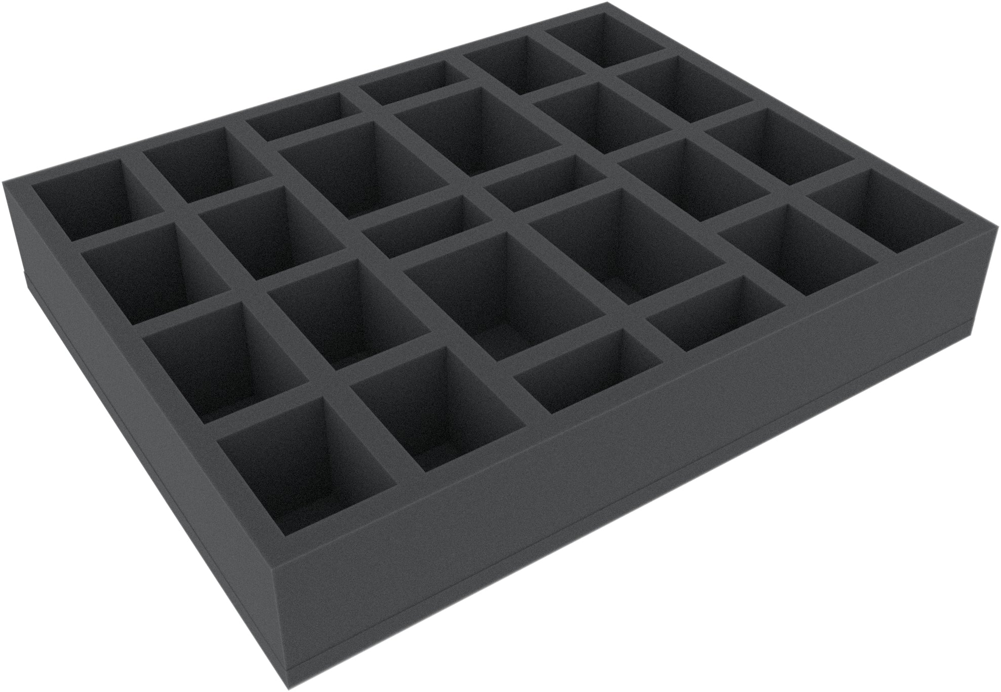 This foam tray has 26 compartments for the safe and orderly storage of miniatures and board game accessories.