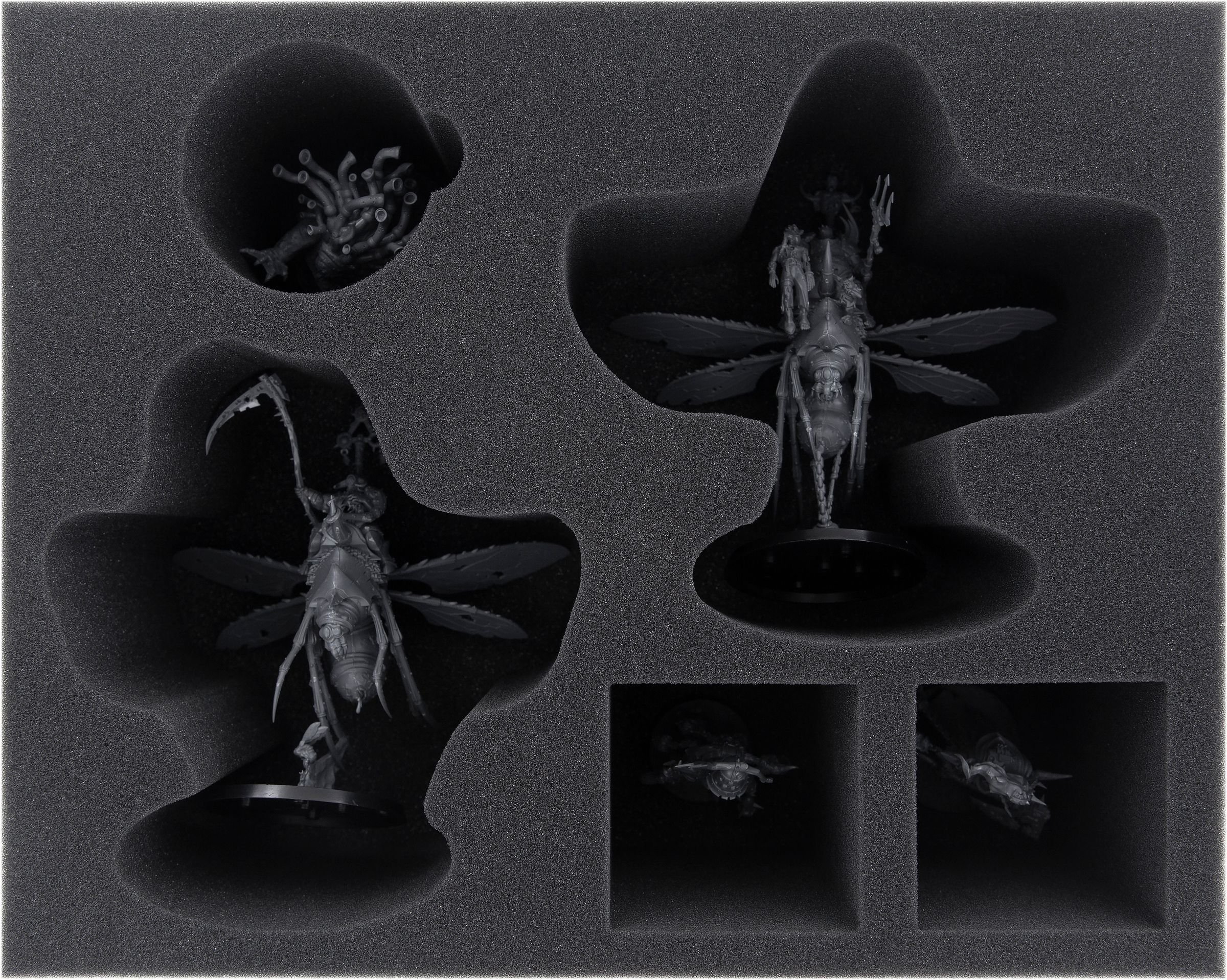 To keep the wings of the insects ready to fly, we have this Full-Size foam tray for you and your flying warriors. With two compartments tailored exactly to the miniatures, it offers optimum protection for the finely detailed models.