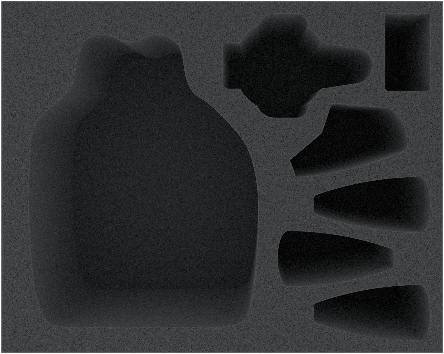The foam tray has the dimensions: 345 mm x 275 mm x 130 mm total height (120 mm usable height + 10 mm foam base)