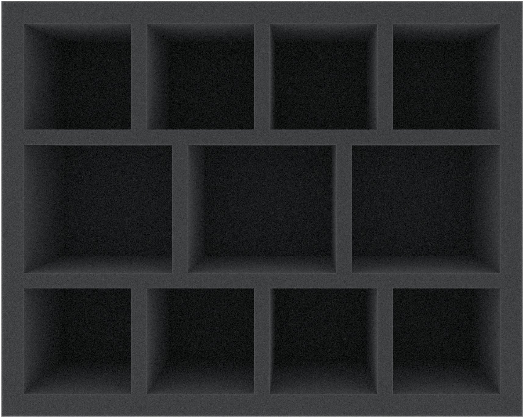 This Full-Size foam tray is divided into 11 large compartments in two different sizes. The insert is particularly suitable for safely storing and transporting larger miniatures. But also accessories, such as tokens and tiles, can be stored neatly here.