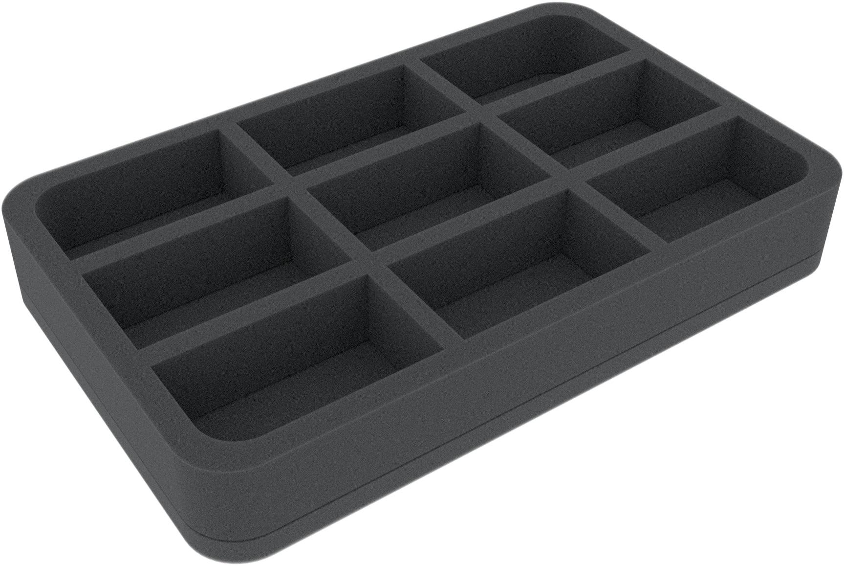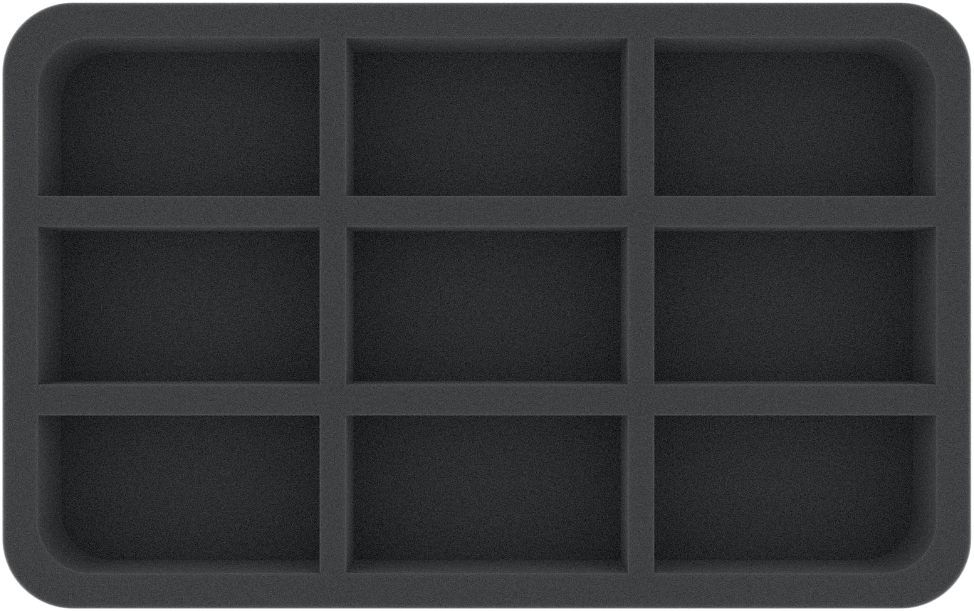 This Feldherr foam tray has nine compartments for the safe and orderly storage of your model cars in 1:64 scale. The tray is suitable for flat cars like e. g. coupés or race cars. The fine-pored foam provides optimal protection against damage – paint remains free from scratches, sensitive parts like e. g. mirrors remain intact.