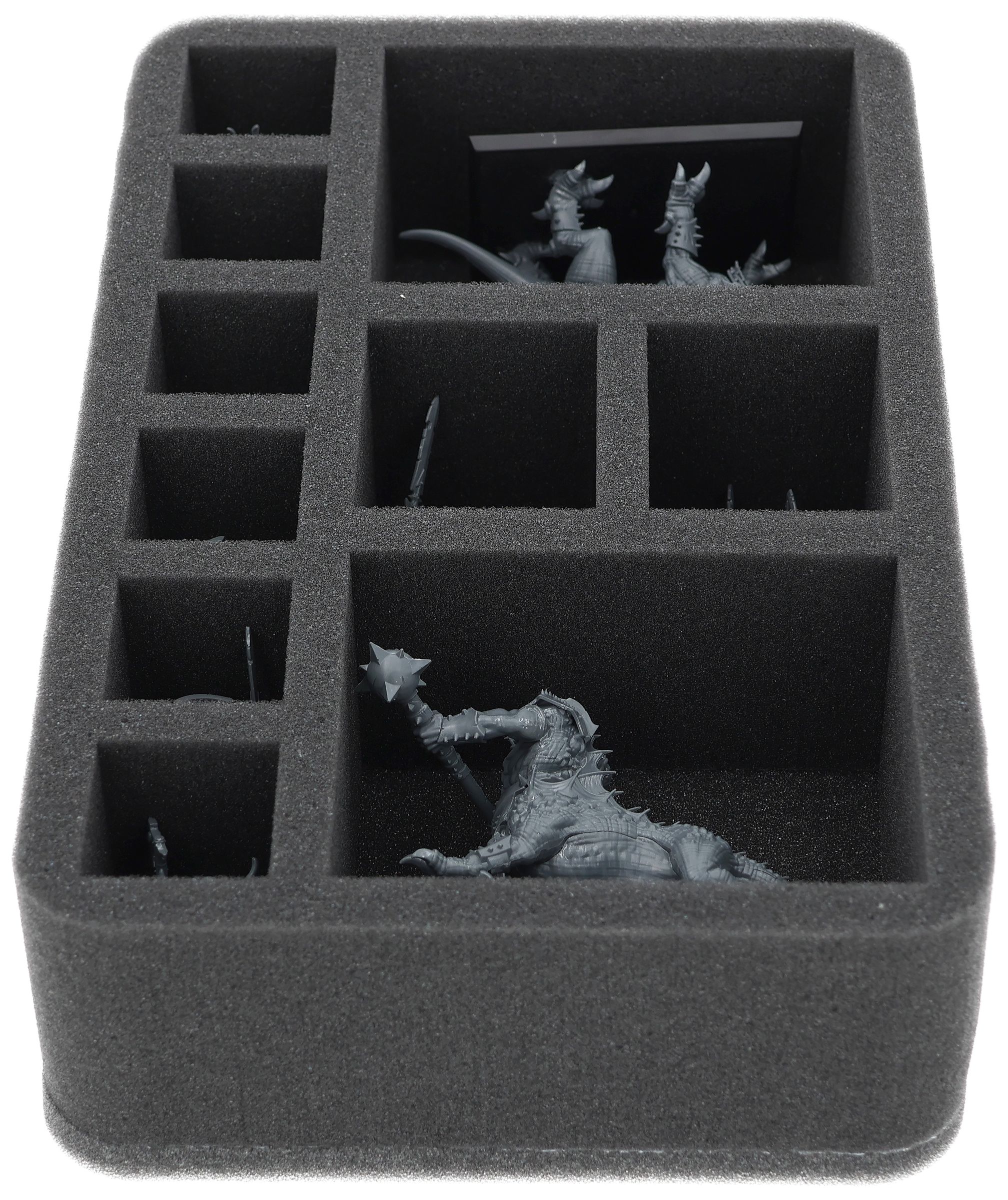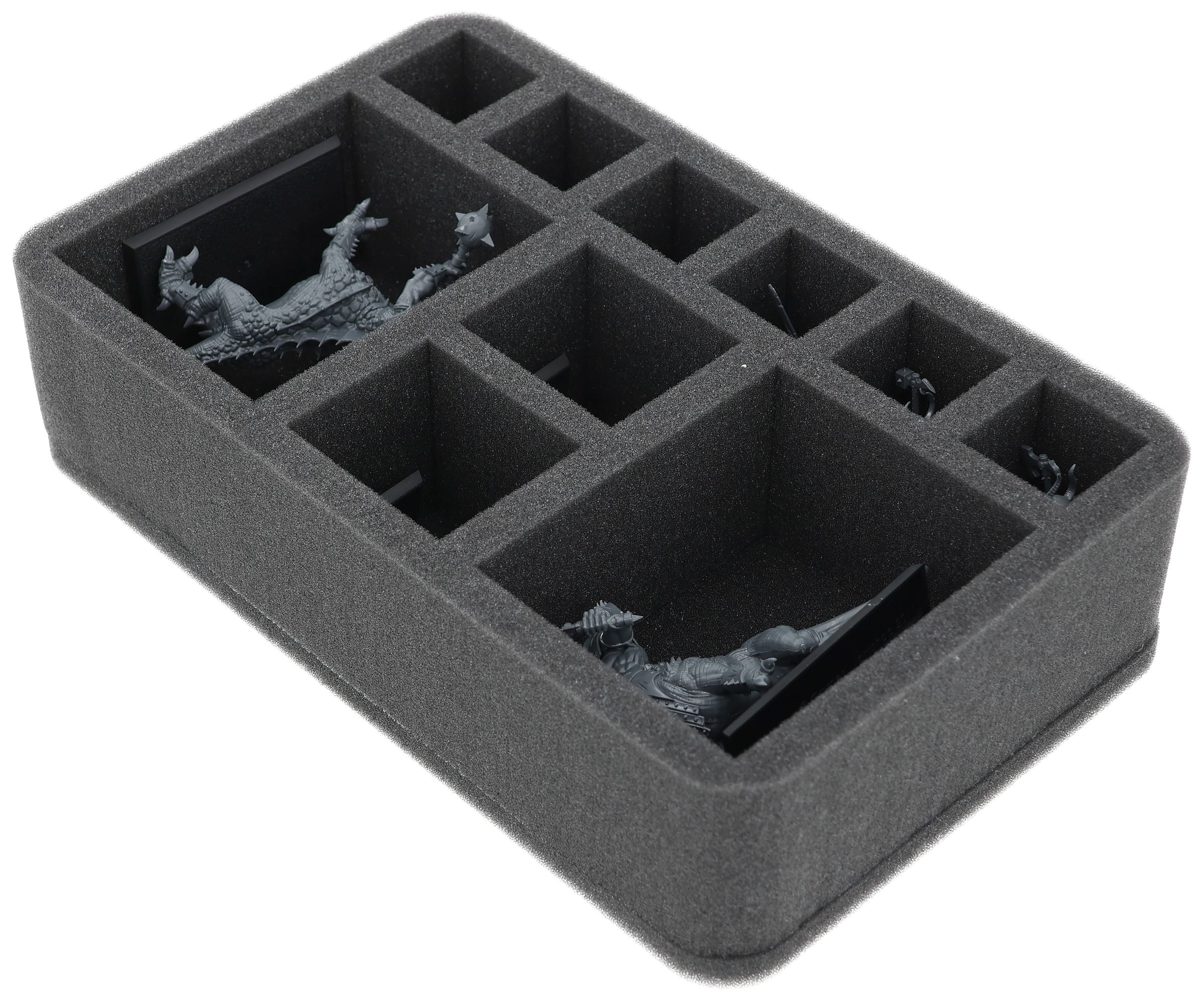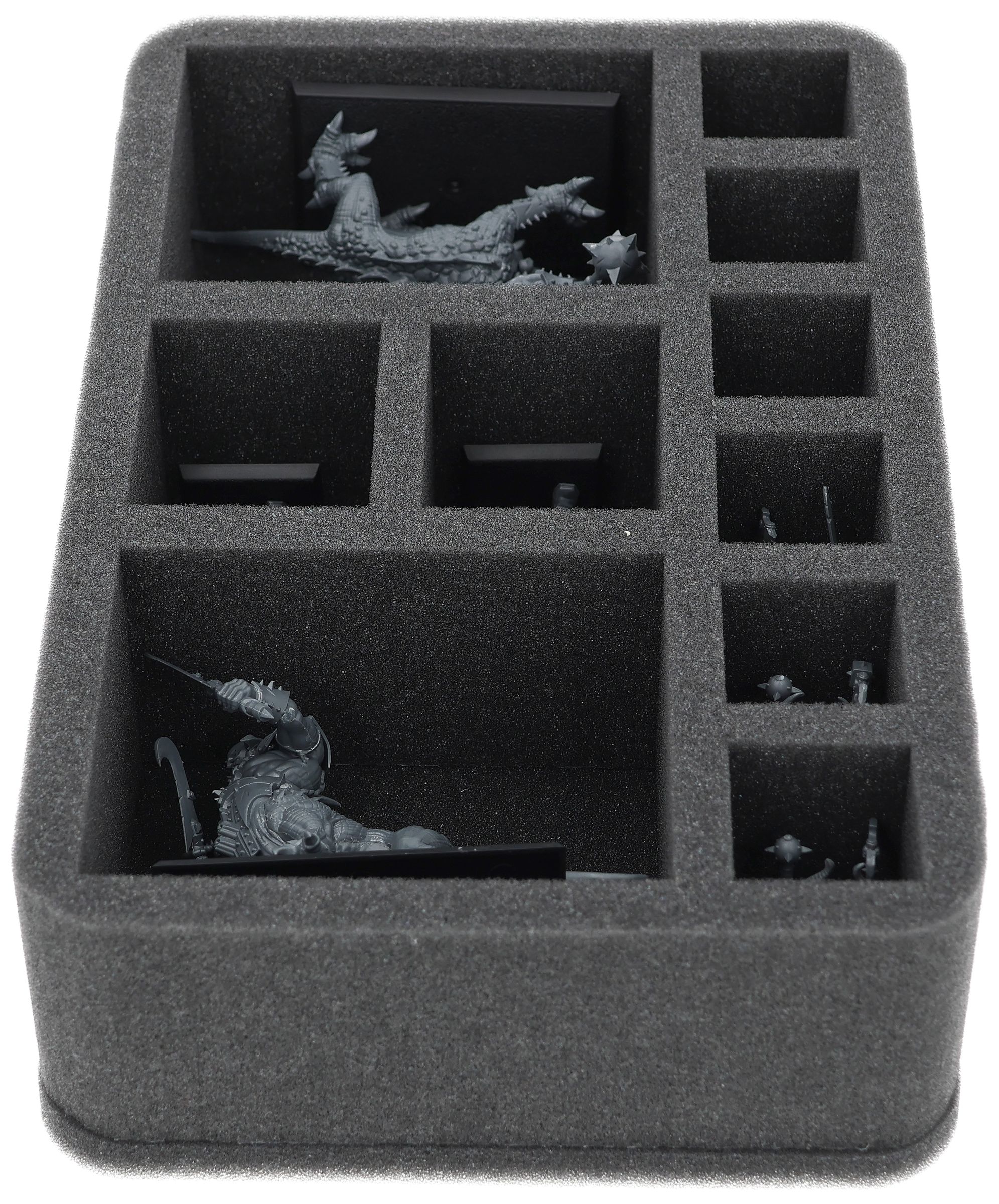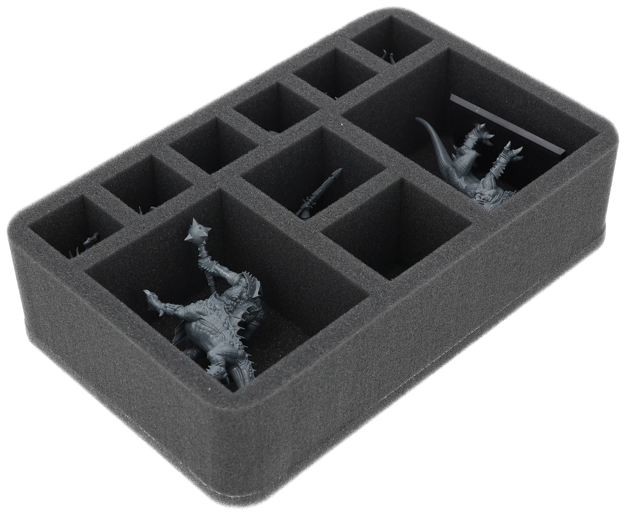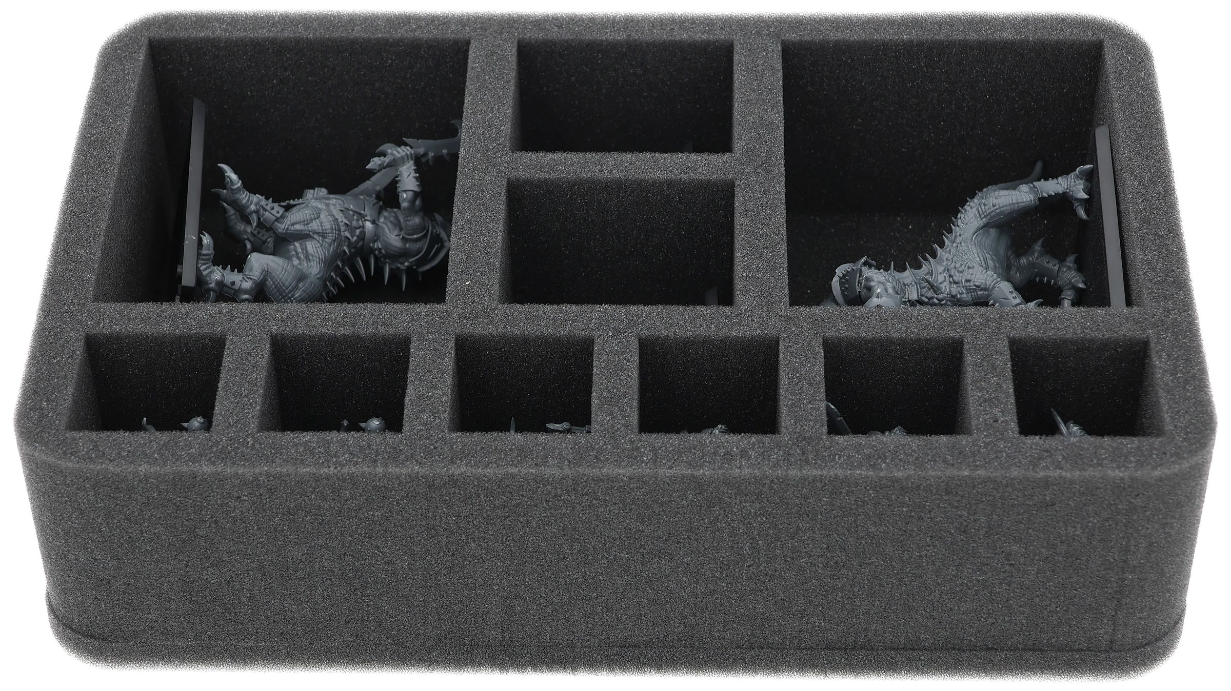 On this Feldherr foam tray you have space for up to 10 miniatures of your army. The insert is especially suitable for storing the Chaos Warriors, Chaos Marauders, Dragon Ogres and similar sized models.