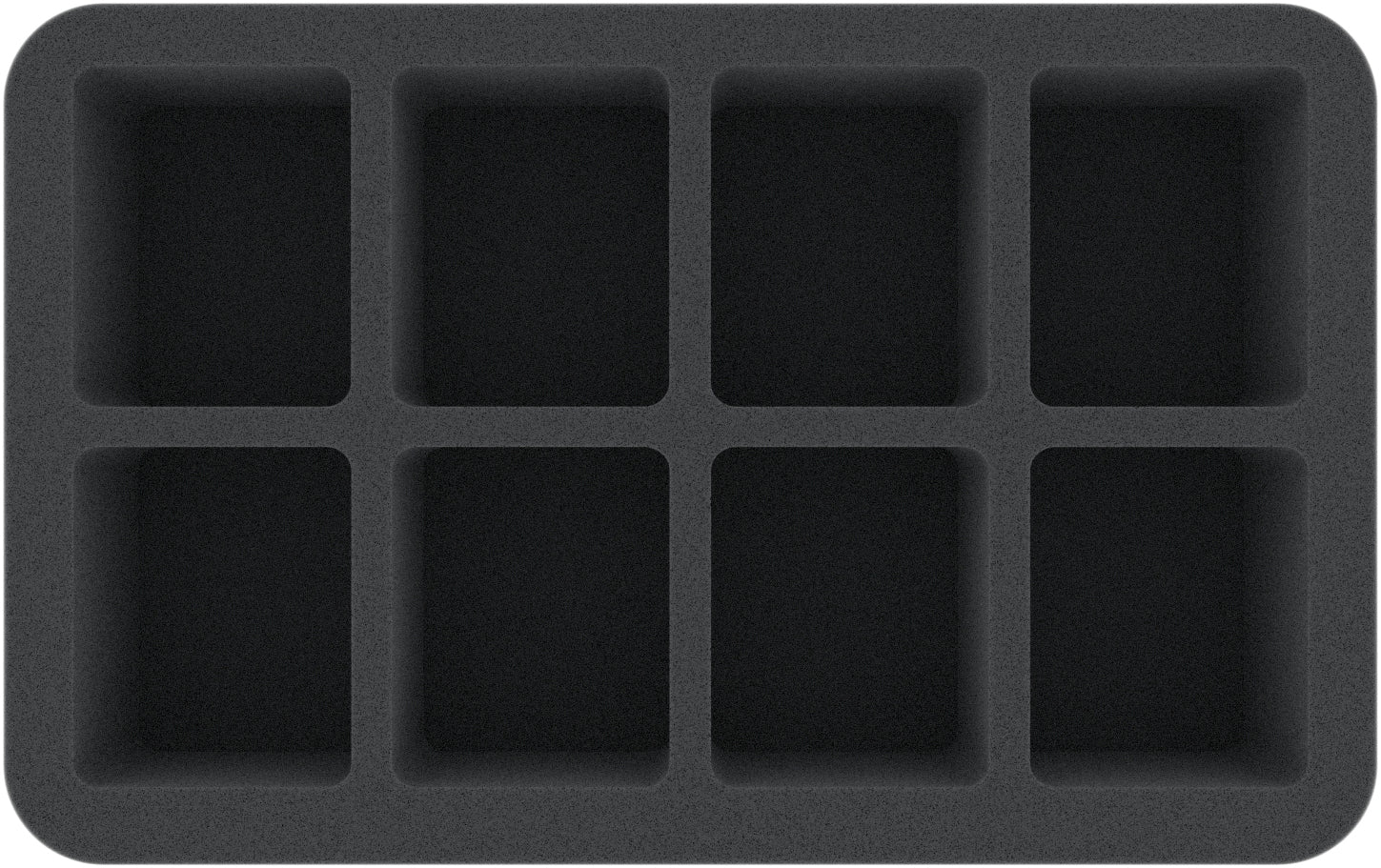 This foam tray features 8 same-sized compartments for the safe and orderly storage of small or medium-sized miniatures. The fine-pored foam provides reliable protection against damage – delicate parts stay intact, the color of painted models remains unharmed. The tray is also suitable to organize small game material like e. g. tokens.
