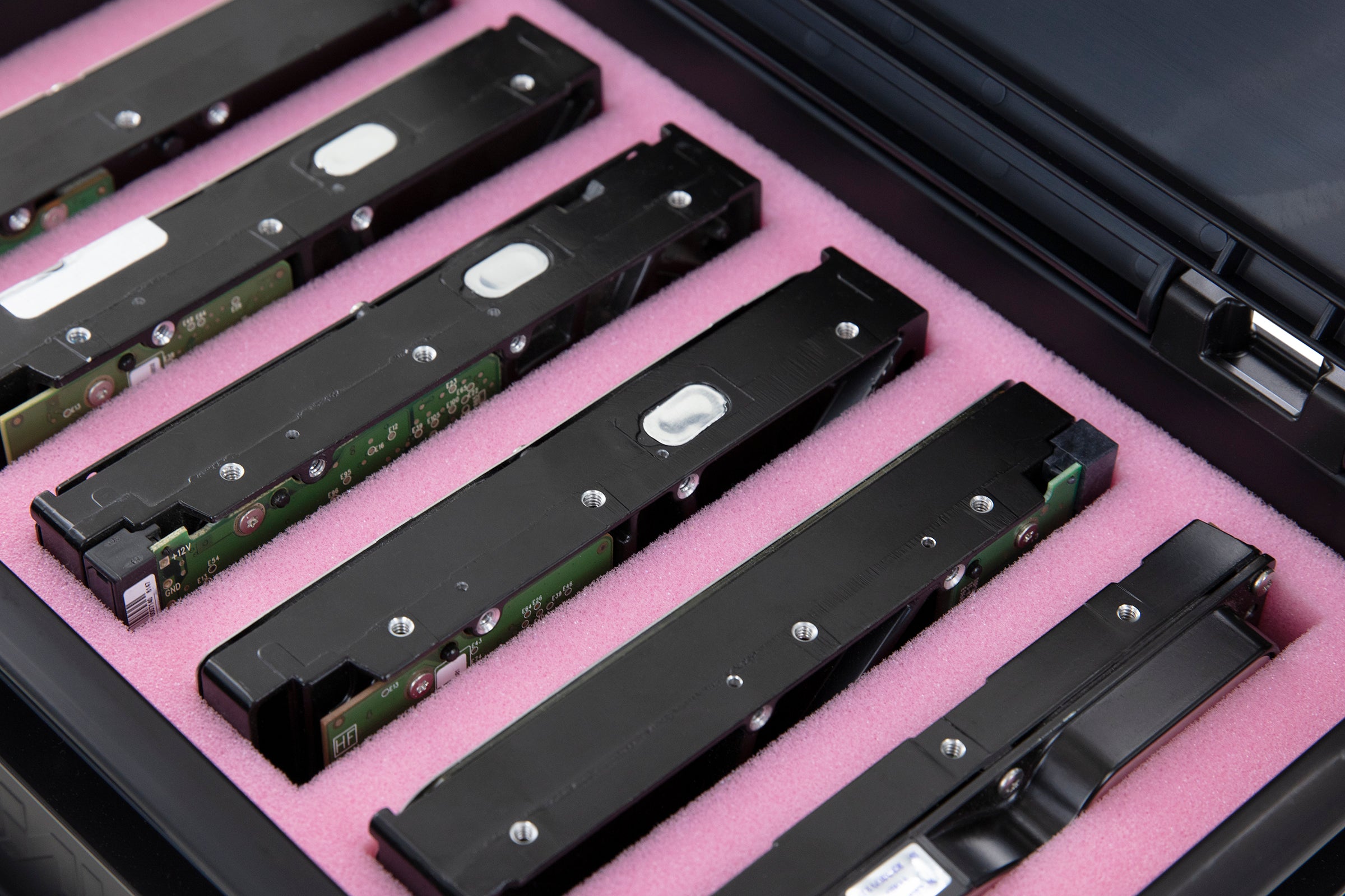 This electrostatic dissipative ESD foam tray features 6 slots for the clear and safe storage of electronic devices like hard disks.