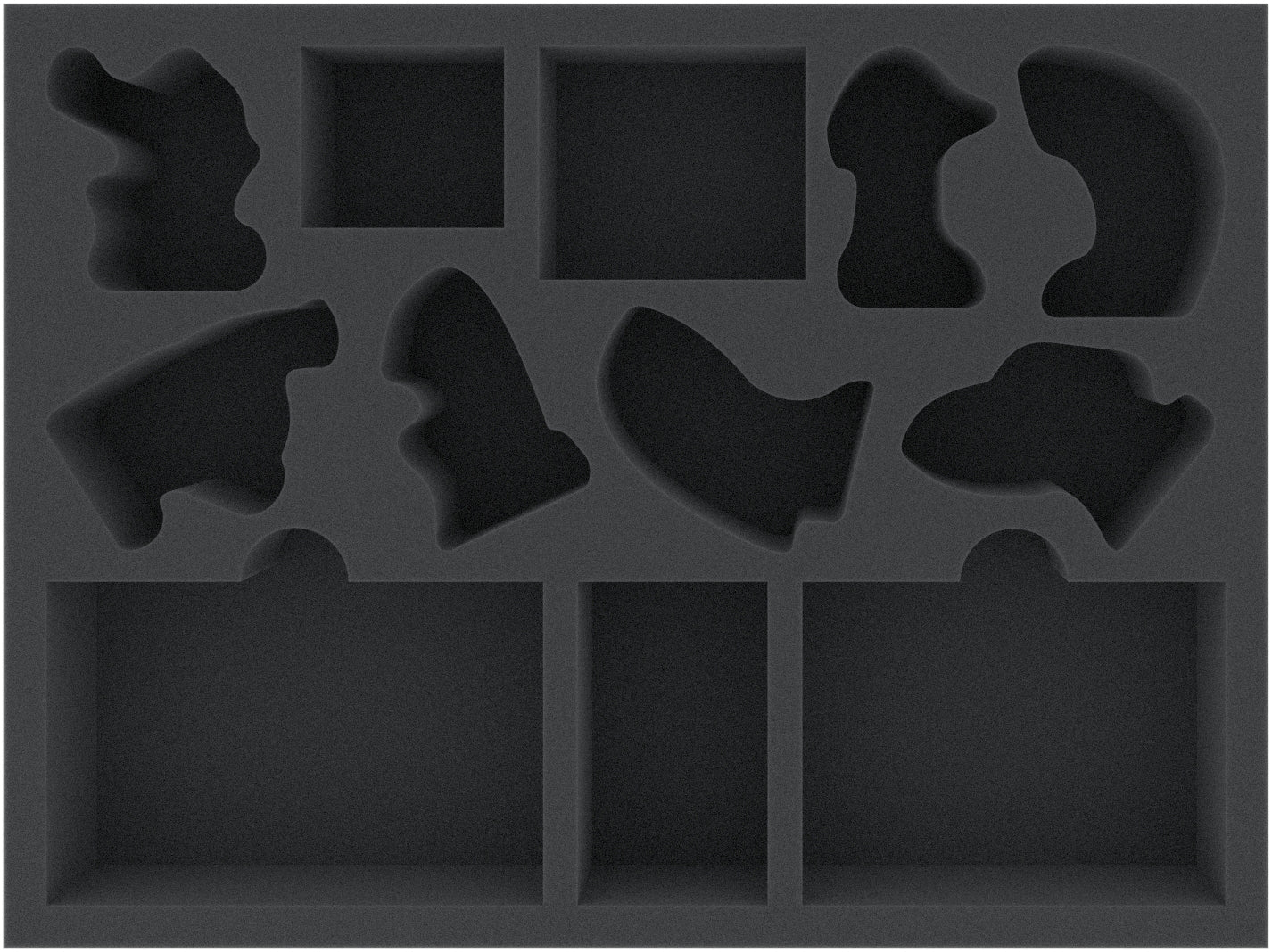 Enveloppées dans une mousse souple, les figurines fines sont protégées de manière optimale contre les dommages. Vous n'avez plus non plus à vous soucier des miniatures peintes. La forme miniature précise évite qu'ils ne glissent ou ne se cognent l'un contre l'autre et ne détruisent ainsi des heures de peinture laborieuse. Les couleurs restent intactes et sans rayures.