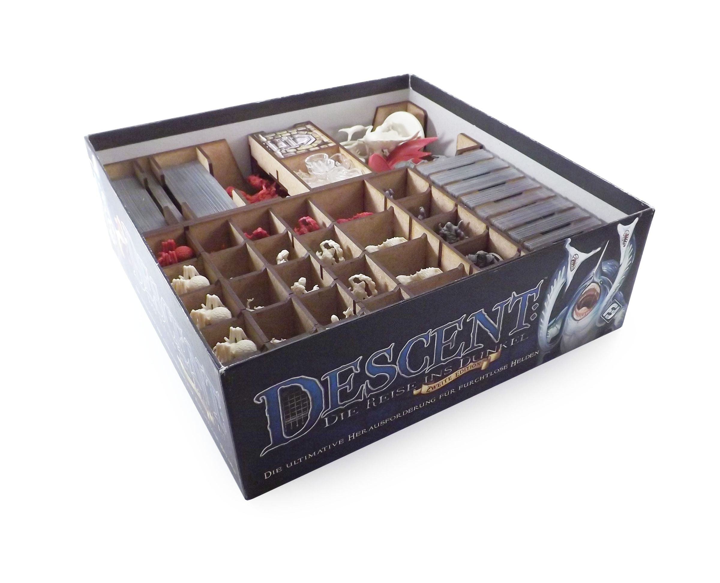 Per portare l'epica lotta tra gli eroi coraggiosi e il signore del male al tavolo, il gioco si presenta con una ricchezza di tessere di mappe, mostri, dadi, porte, gettoni e carte. I nostri inserimenti raggruppano e raggruppano tutti questi componenti per una discesa ordinata nel dungeon successivo.