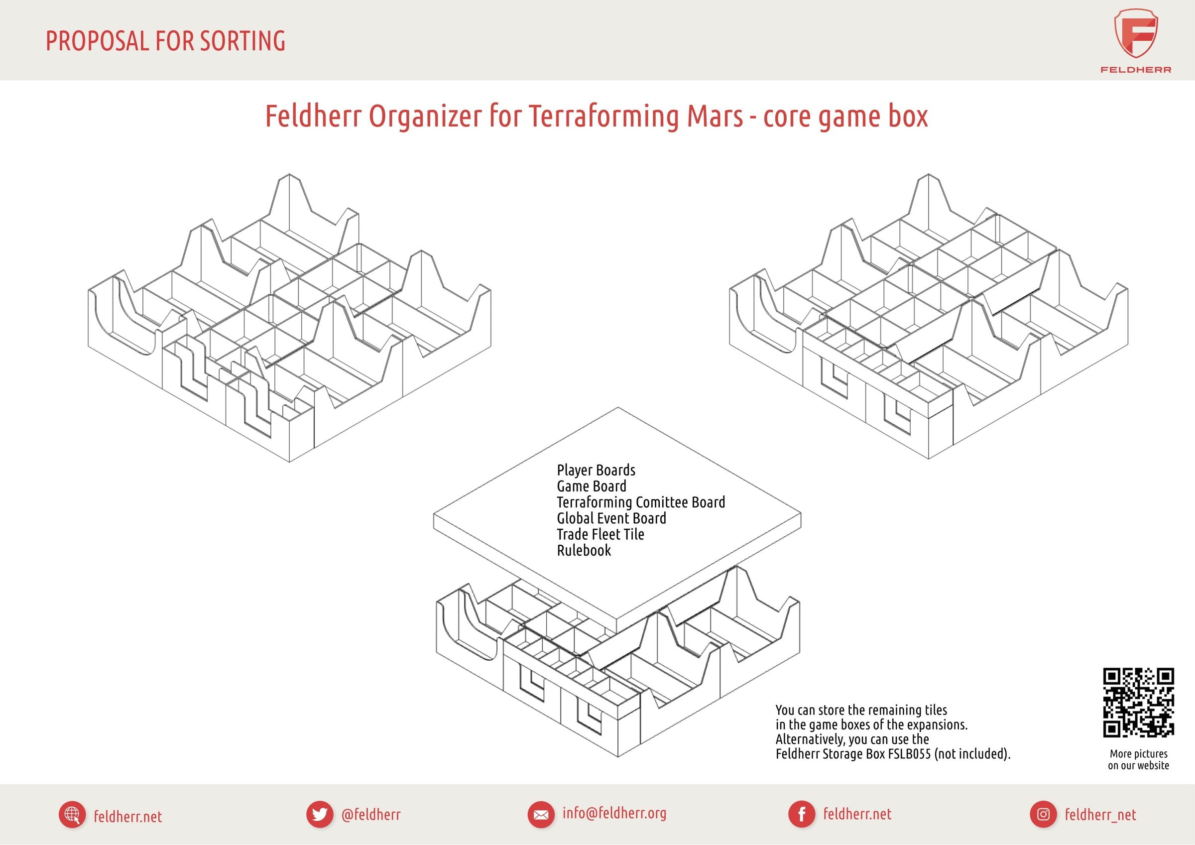 - Puoi conservare le tessere rimanenti nelle scatole di gioco delle espansioni. In alternativa, è possibile utilizzare la Feldherr Storage Box FSLB055 (che non è inclusa in questo set).