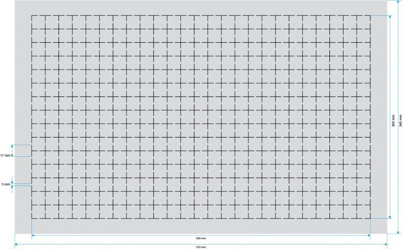 - La cuadrícula preperforada con un tamaño de 20 mm x 20 mm.
