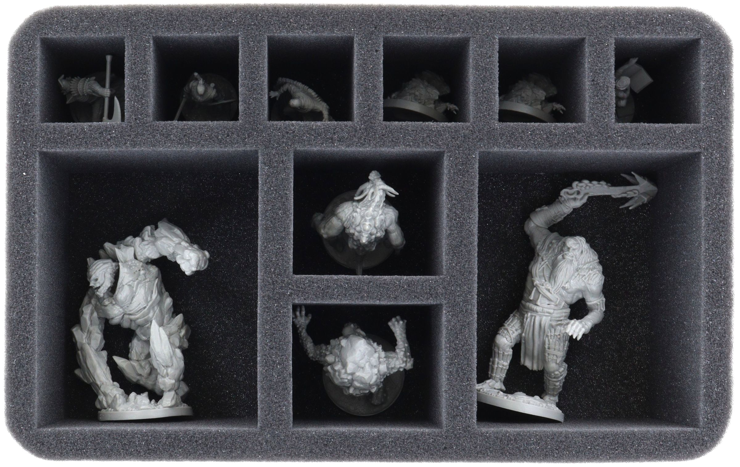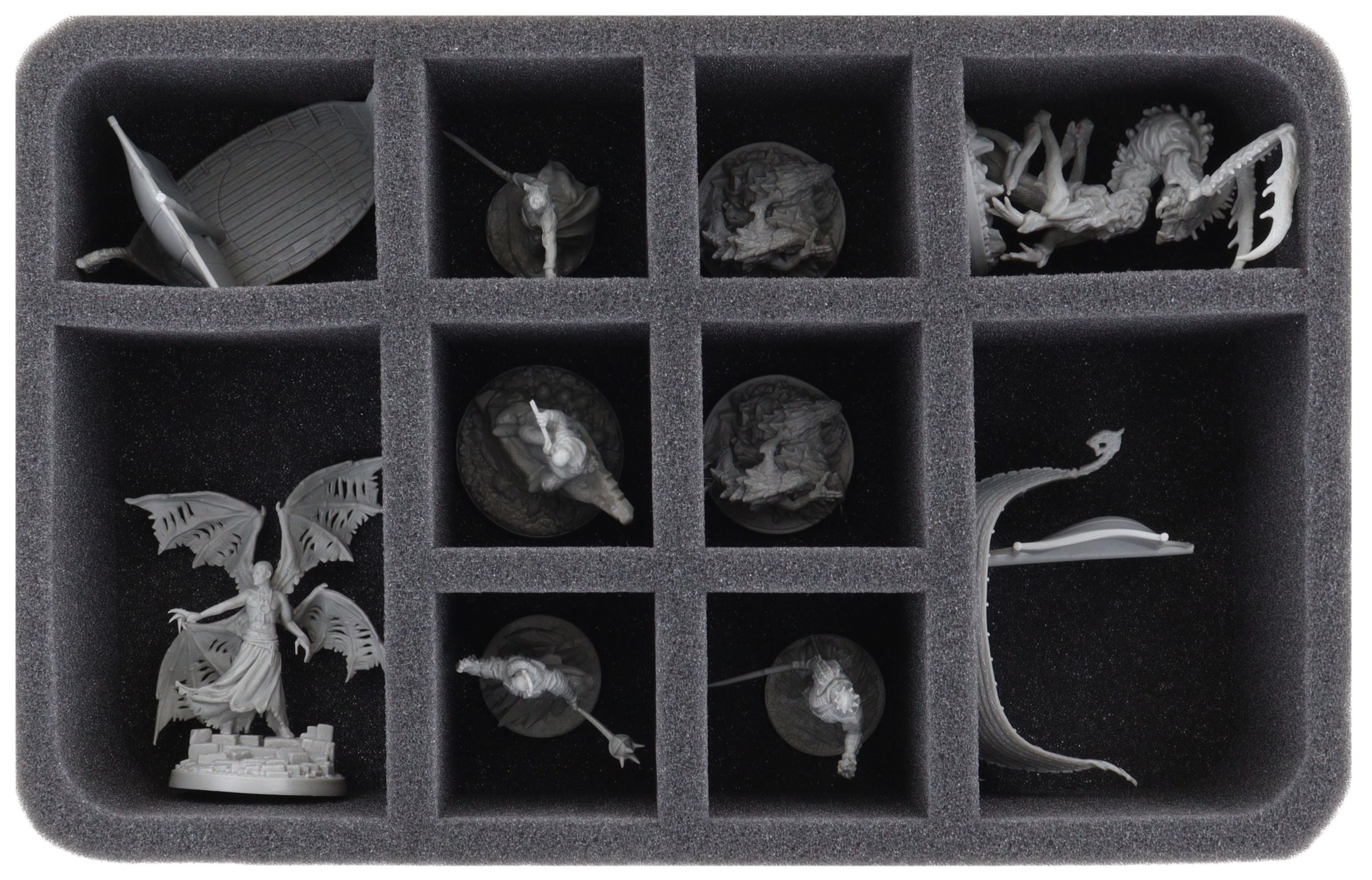 Each miniature has its own compartment. The custom-fit cut reliably protects your figures from damage.