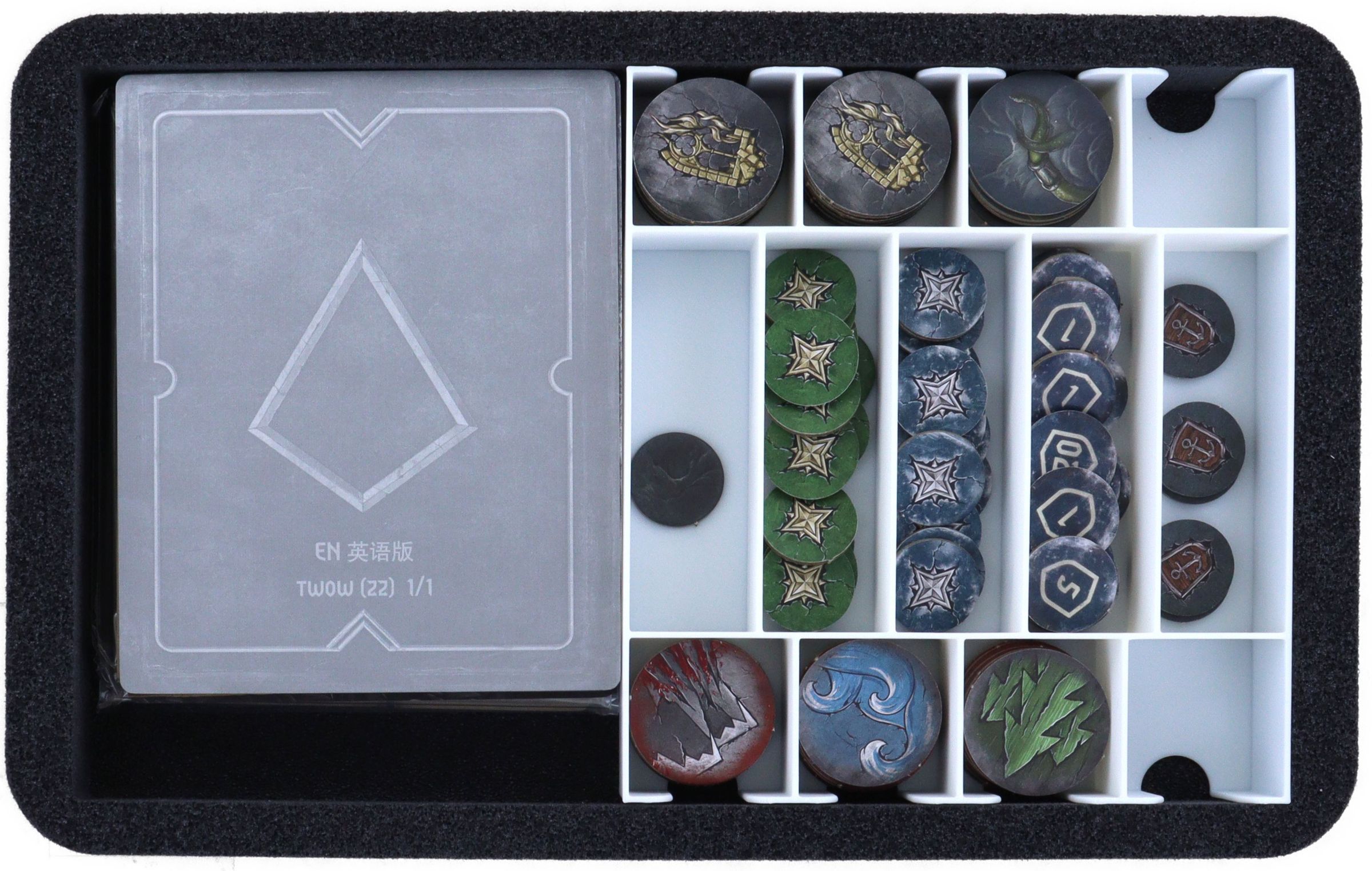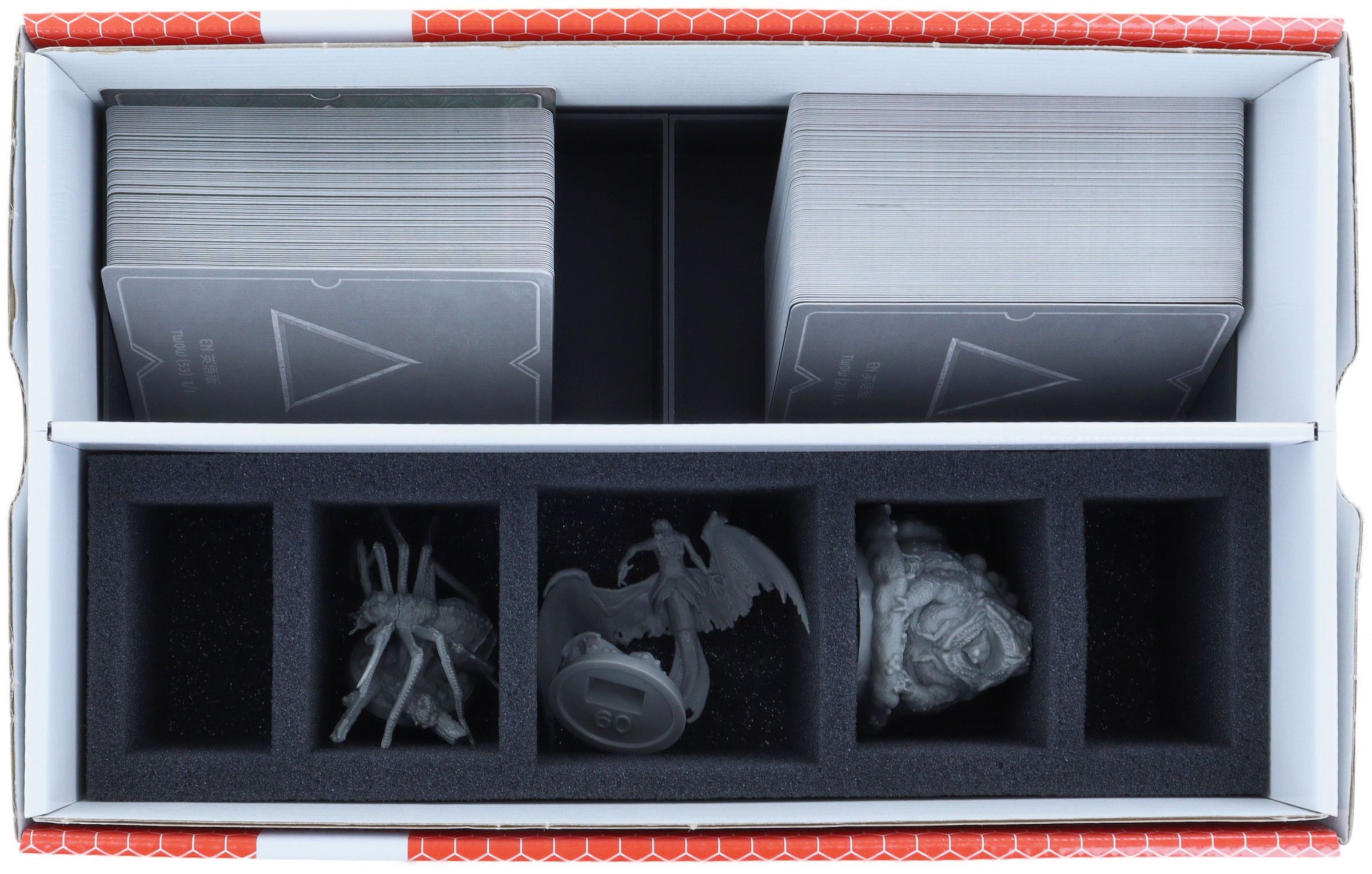 - For sorting the cards and game material, the set includes three TCHS105 Storage Boxes, a robust FSLB040 Storage Box, a hard foam insert and various Organizer Inserts.