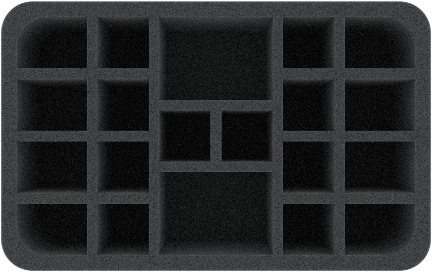 This Half-Size foam tray has the dimensions: 275 mm x 172 mm x 80 mm total height (70 mm usable height + 10 mm foam base)