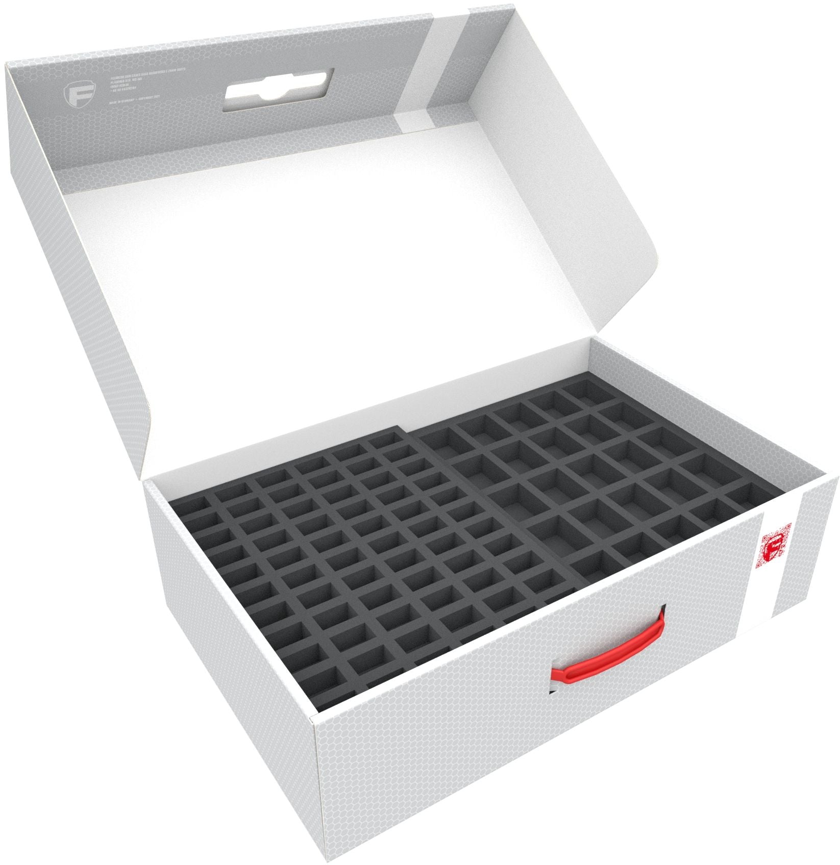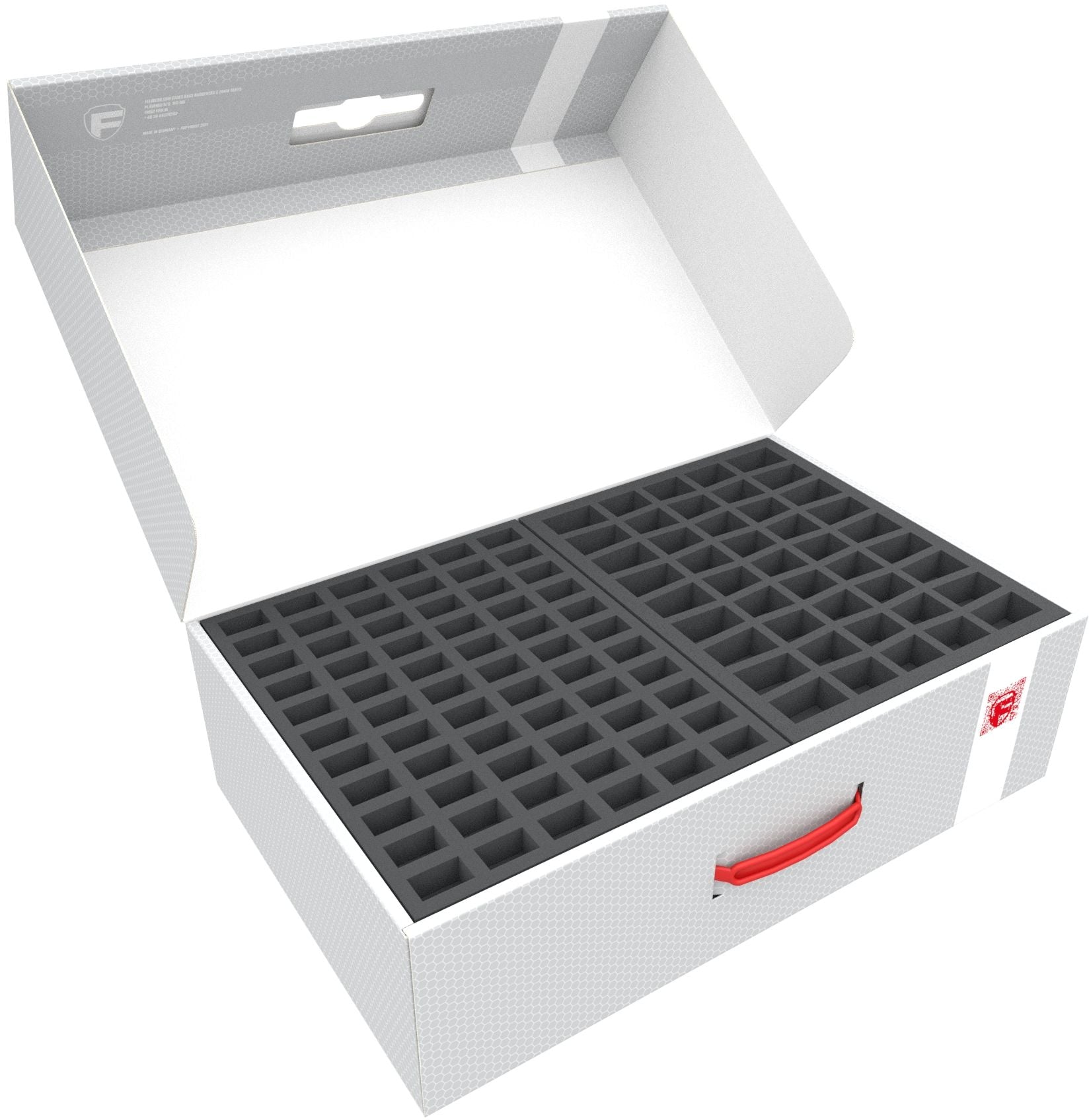 - 2 Full-Size bandeja de espuma con 25 compartimentos cada una, para figuras de sobremesa voluminosas de 20 mm como Caballeros Templarios, cañones de la Guardia Imperial Francesa y miniaturas con dimensiones similares (FS035A030)