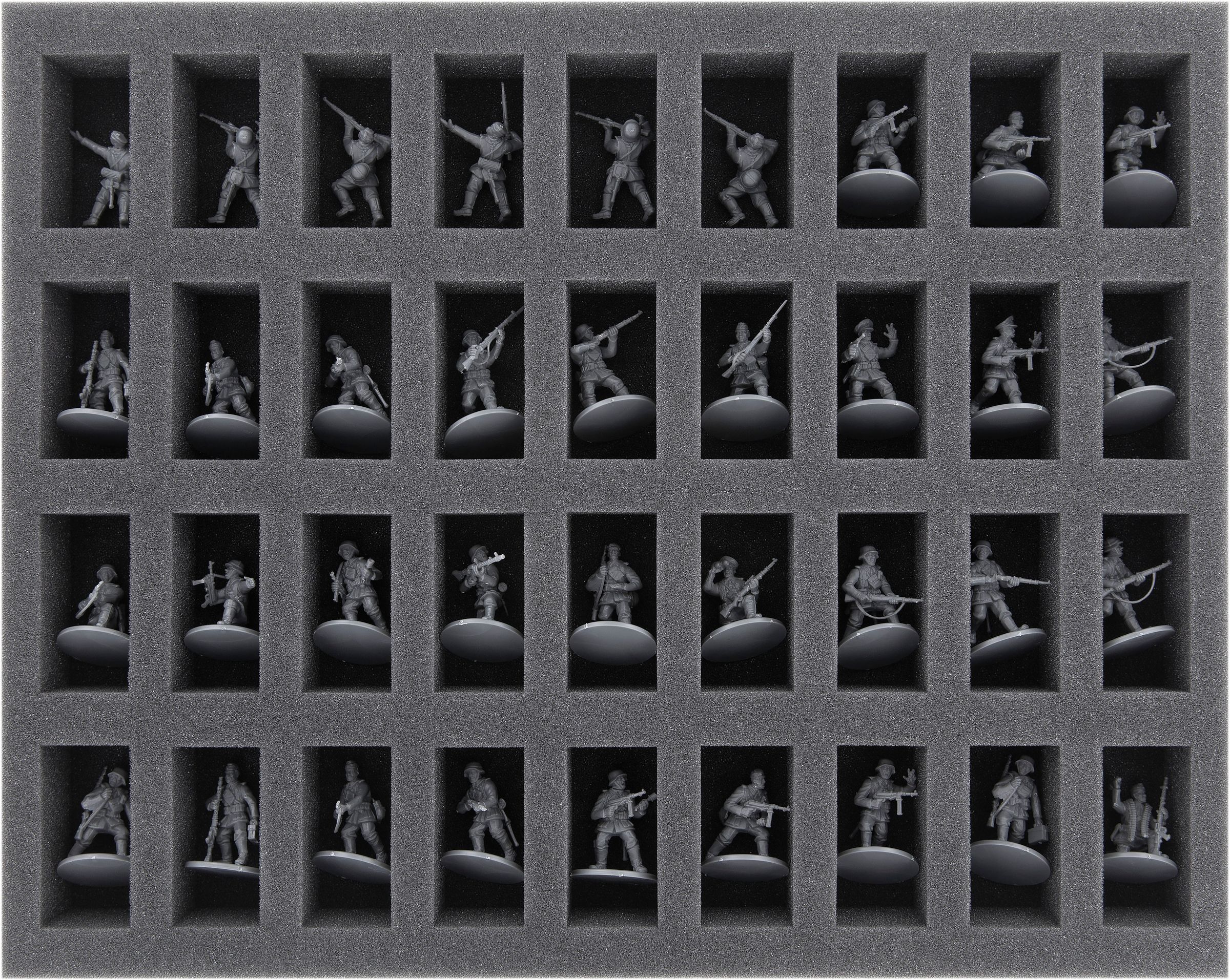 - 2 bandeja de espumas de medio tamaño, cada una con 36 compartimentos para miniaturas de los juegos "Detrás de Omaha", "Fuego Rápido" o "Juego de Punto en Blanco" (FS035A004)