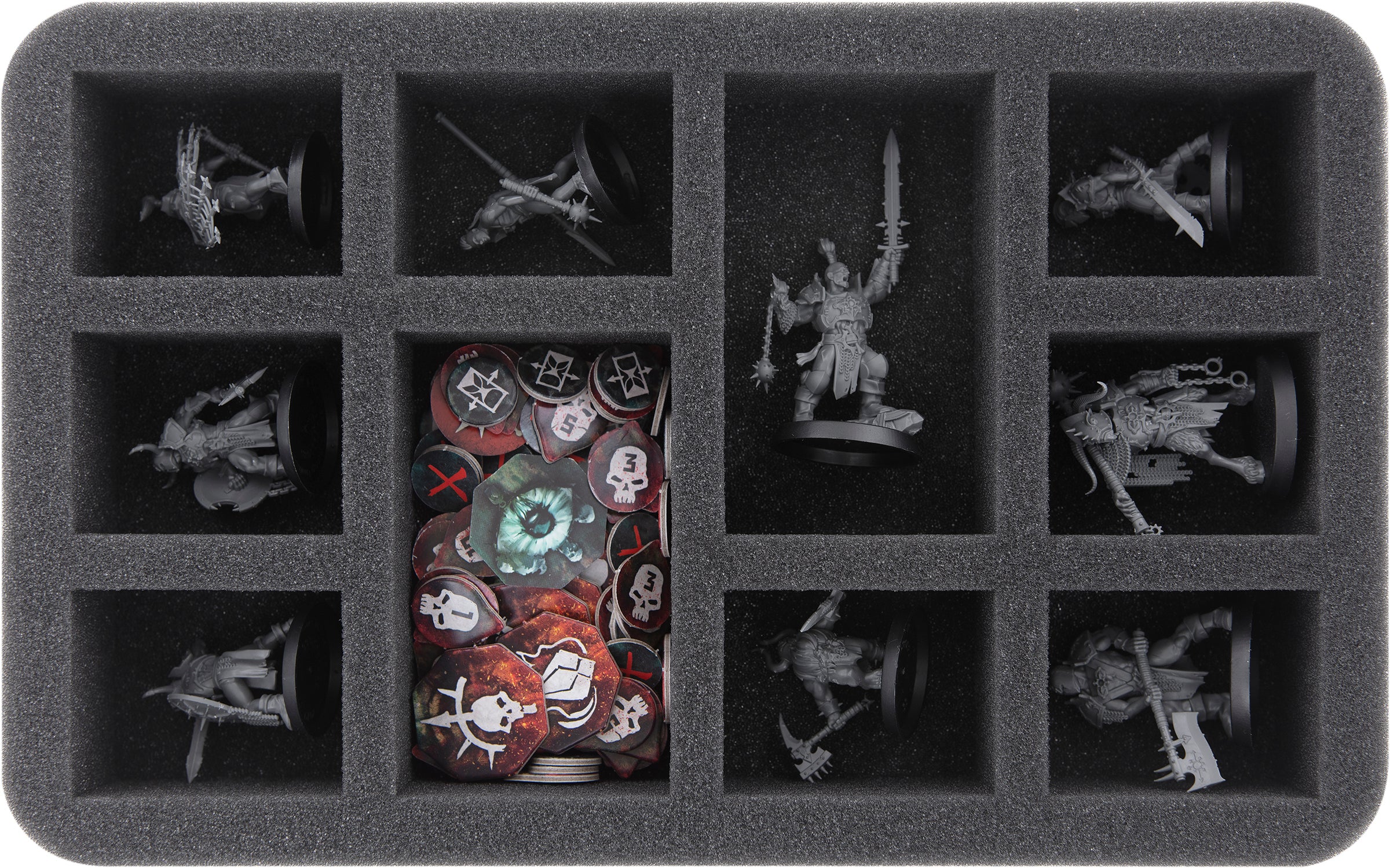 - 4 Half-Size bandeja de espuma, cada una con 10 compartimentos para, por ejemplo, Tiranos Spyre, Guerreros del Caos, Chaosbarbaren (HS045A008)