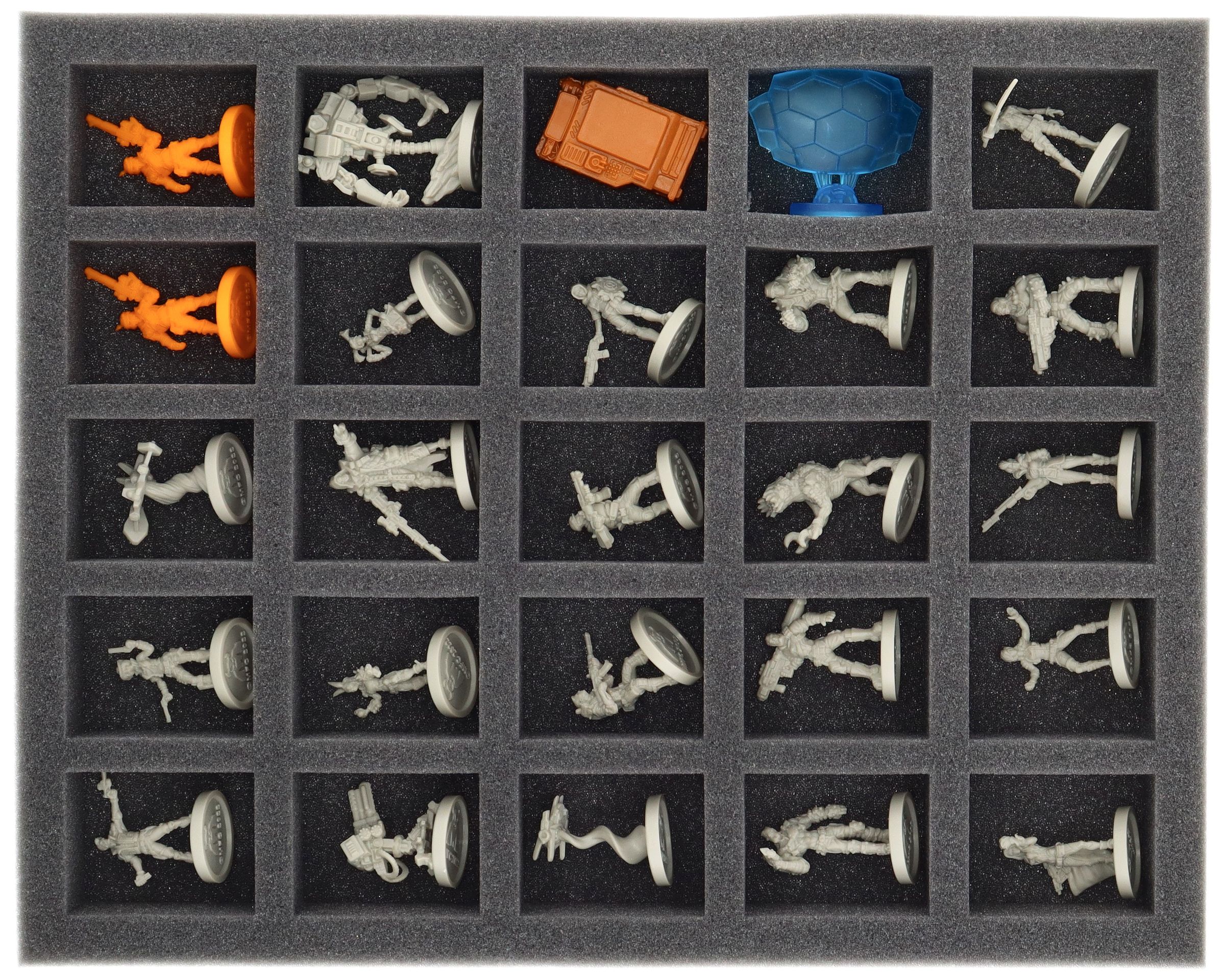 • 1 Full-Size foam tray with 25 compartments for miniatures (FSLQ040BO)