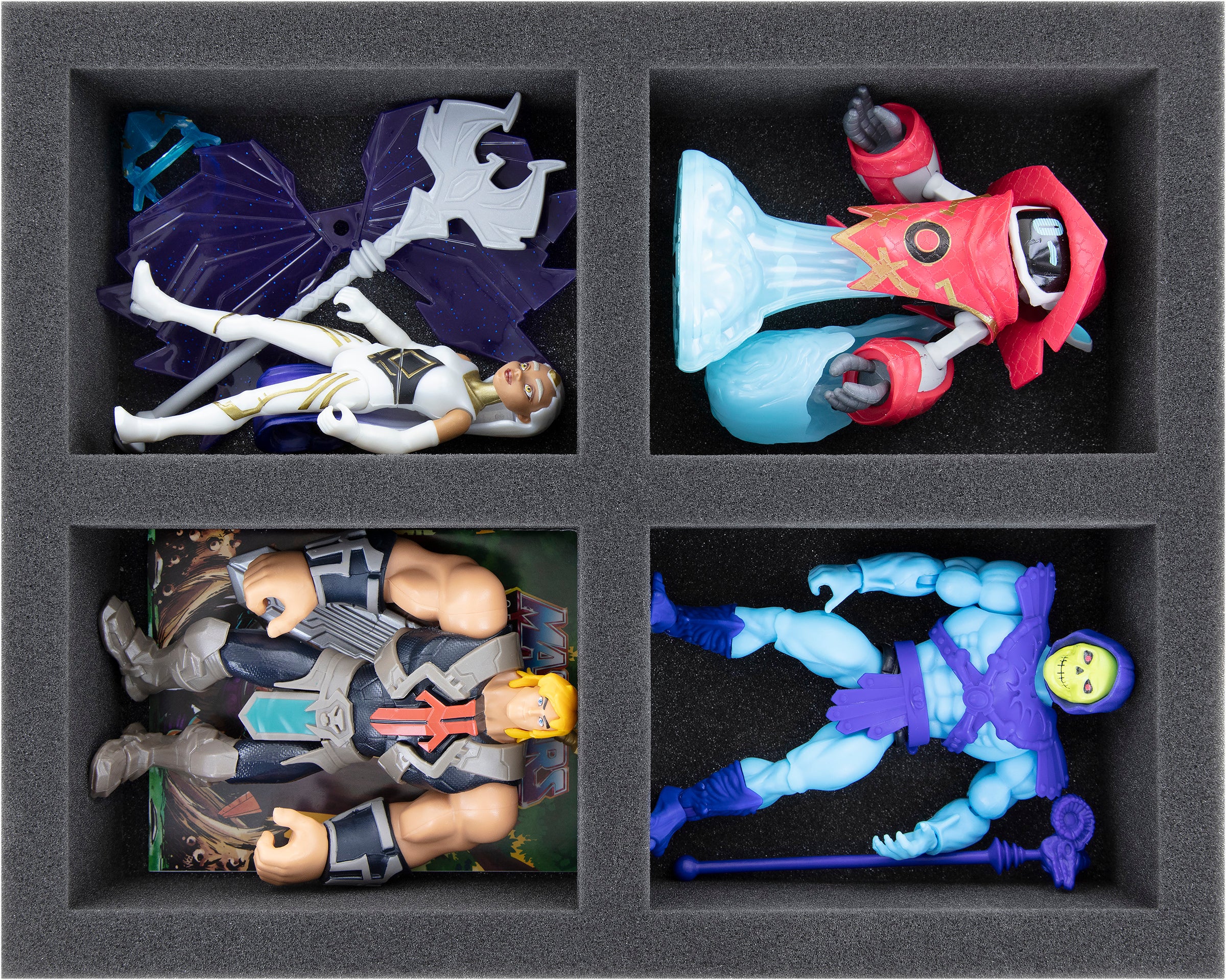 Whether vintage or brand new - this Feldherr Storage Box is ideal to store He-Man, She-Ra, and Skeletor. A total of 20 of your heroes and villains have their own foam compartments. Your Mattel action figures are stored orderly and safely in the foam tray.