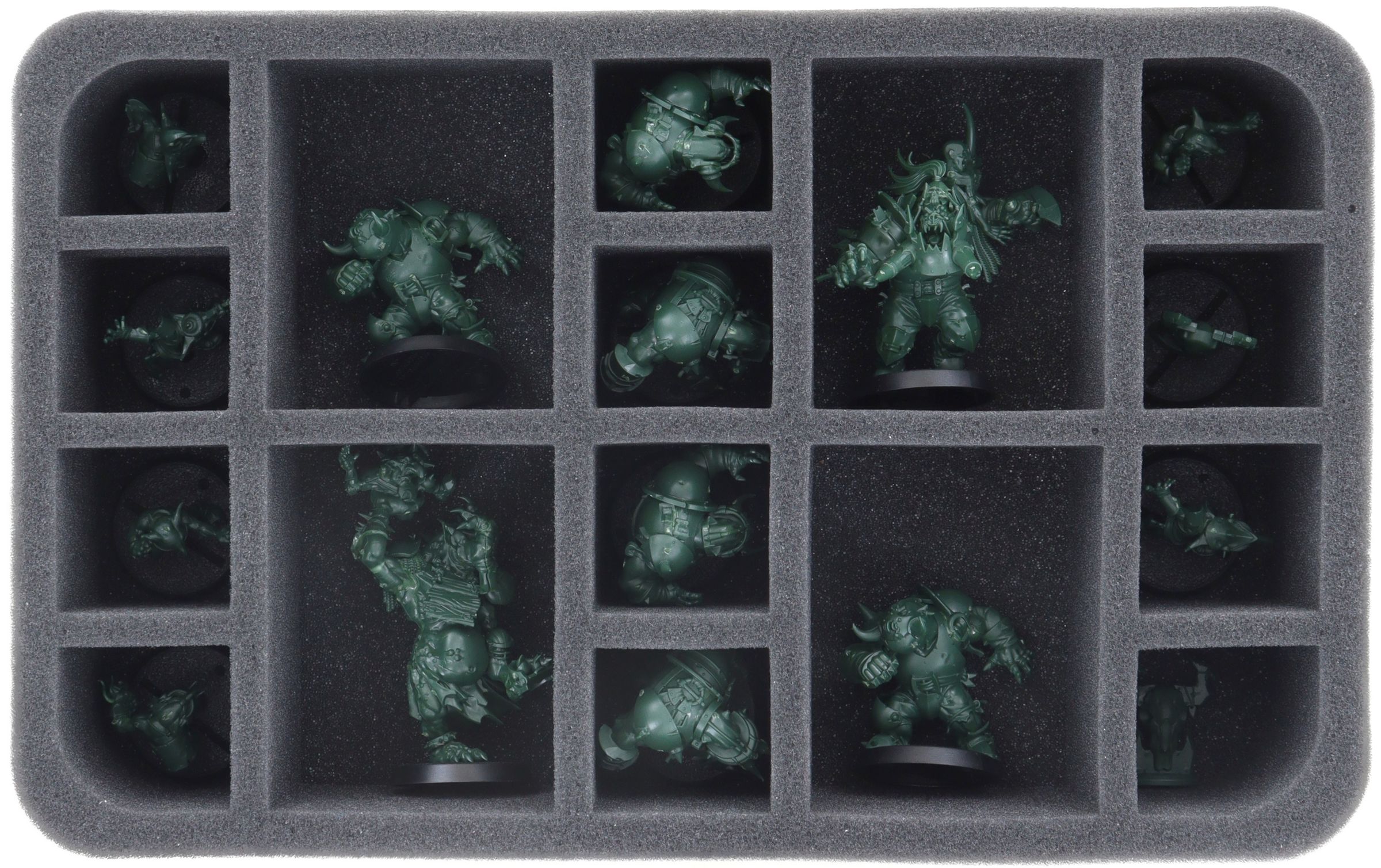 • 1 Half-Size foam tray with 16 compartments for Thunder Valley Greenskins and Blood Bowl Troll. (HS060A067)