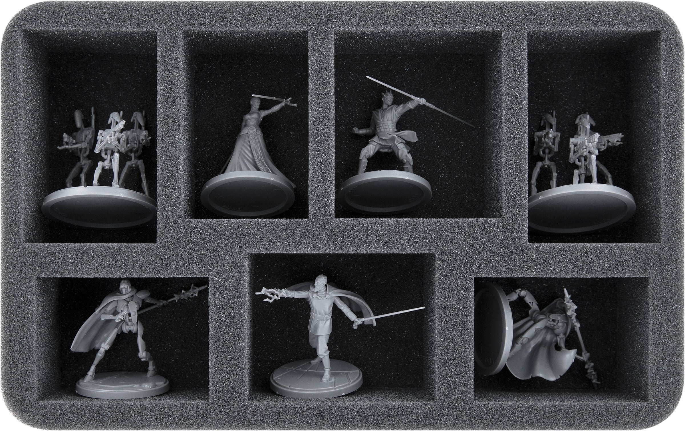 - 1 Half-Size bandeja de espuma con 7 compartimentos para miniaturas voluminosos sobre peanas de 40 y 50 mm como Lord Maul, B! Battle Droids y Miniaturas de tamaño similar (HSLZ060BO)