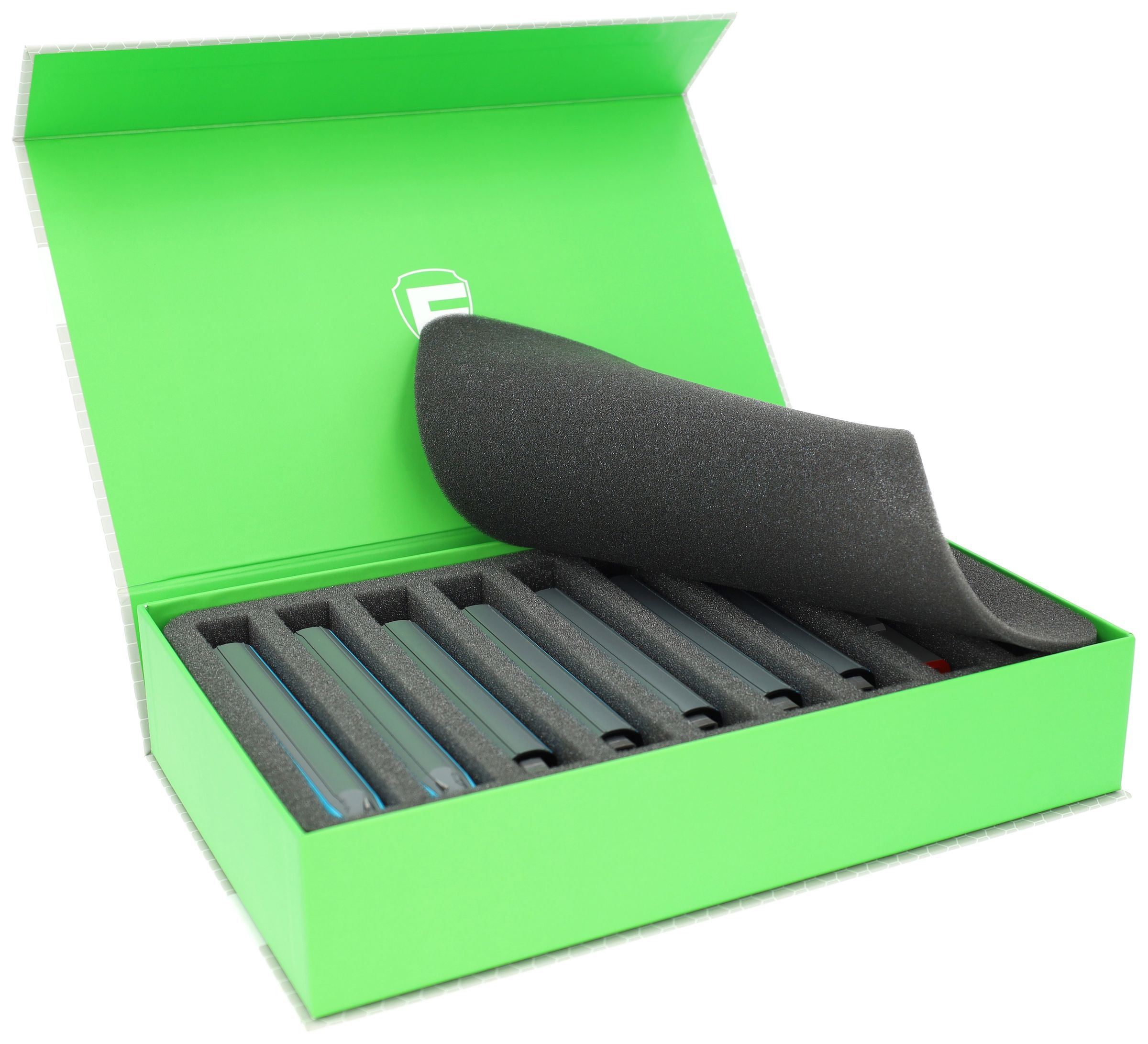 Los modelos se almacenan de forma segura en todo su perímetro y quedan protegidos de forma permanente contra daños y desgaste, como arañazos y desconchones de pintura, gracias a la espuma de alta calidad.