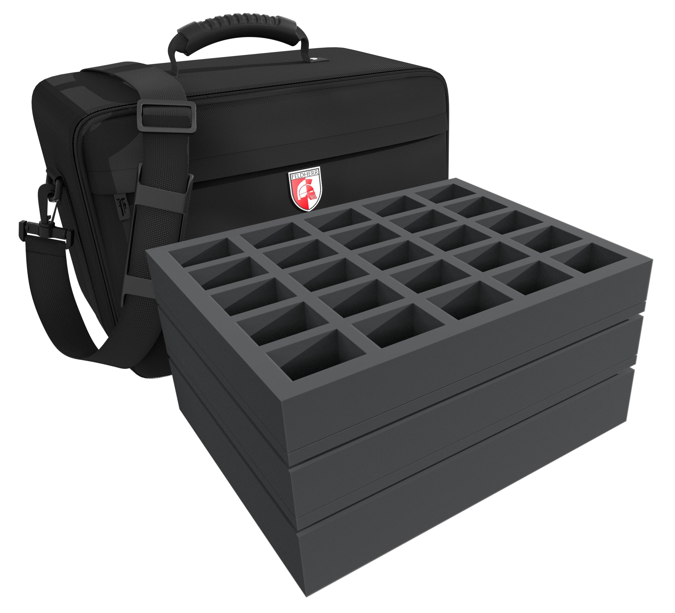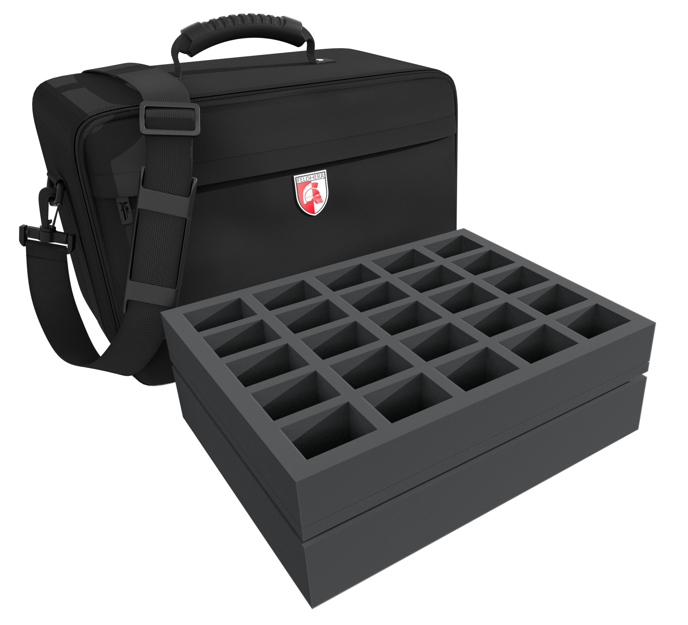 Para que su artillería siga rodando y sus miniaturas de infantería no resulten dañadas, Feldherr le ofrece este bolso MAXI PLUS con espuma a juego para tanques, vehículos o monstruos, y hasta 75 miniaturas de tamaño medio sobre bases de hasta 40 mm. La espuma de poros finos proporciona una protección fiable contra daños - las partes frágiles permanecen intactas, el color de los modelos pintados permanece intacto.
