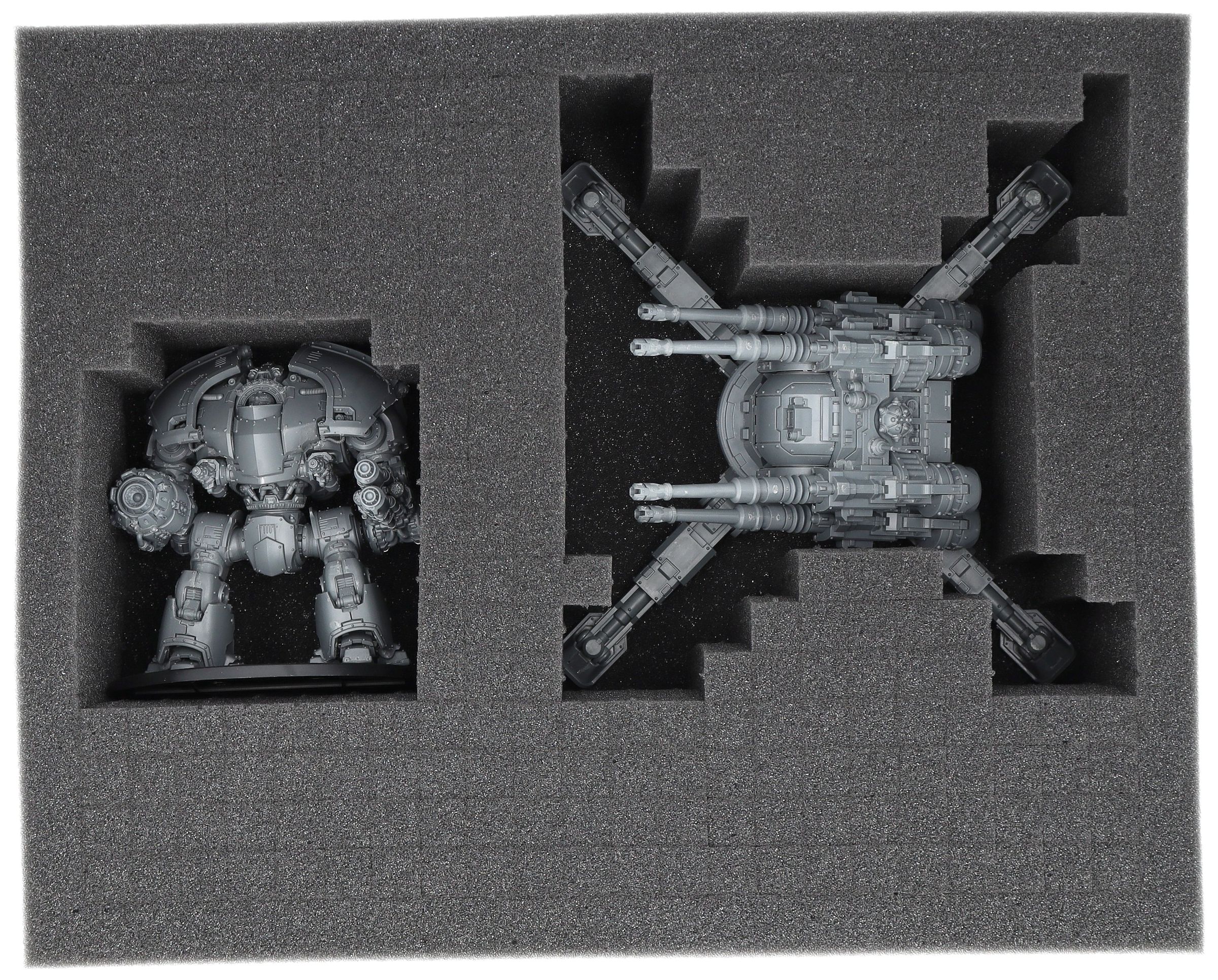 - Flexible: Incluye un inserto de espuma pick & pluck de 100 mm (con reverso autoadhesivo y base de espuma) para personalizarlo: diseña tu inserto para los modelos más grandes del set, como el Saturnine Dreadnought, en pocos pasos y sin pegamento ni herramientas.