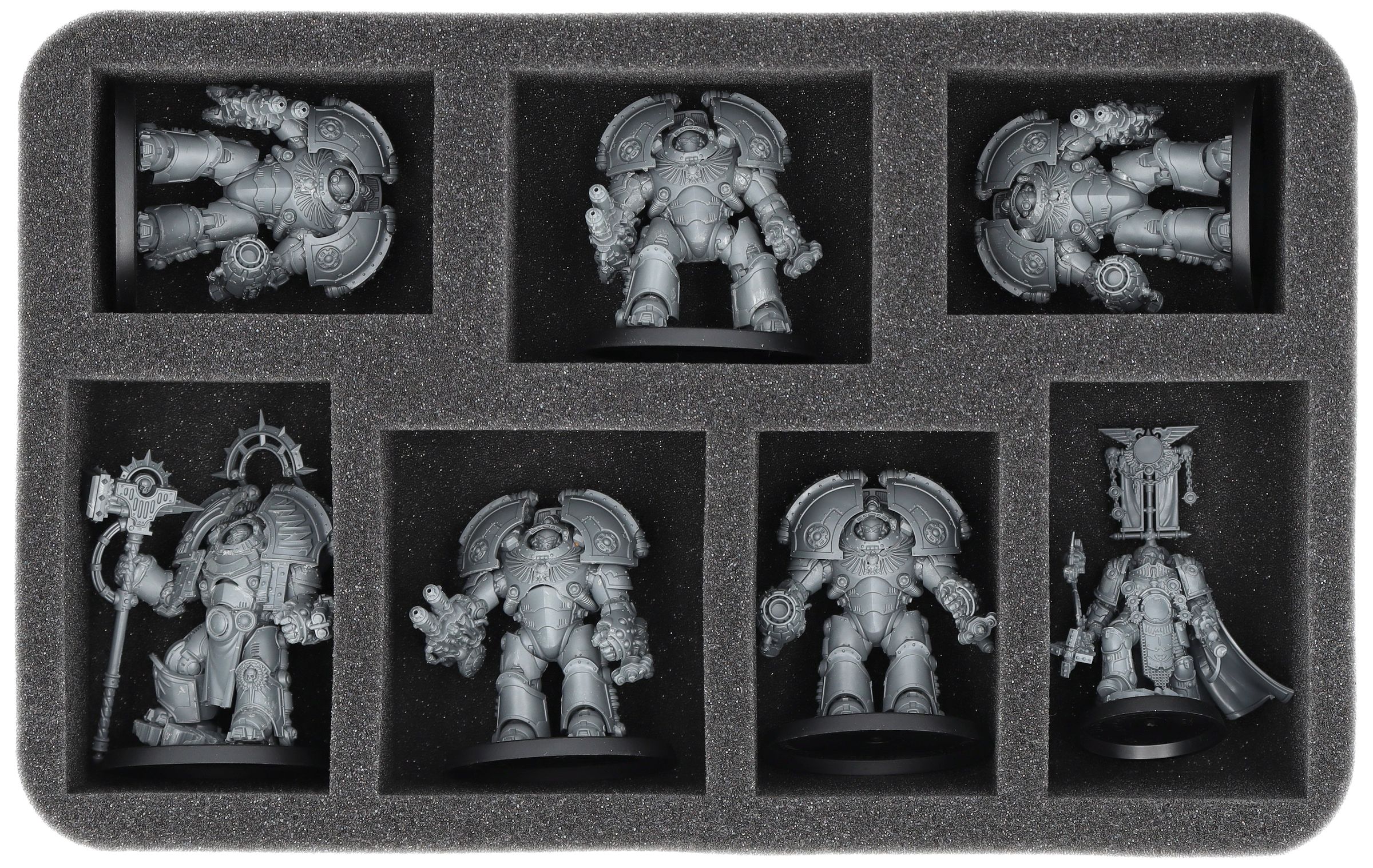 - 1 x HS060A089 - Bandeja de espuma de tamaño medio con 7 compartimentos para, por ejemplo, la Escuadra Terminator Saturnine y el Pretor Saturnine