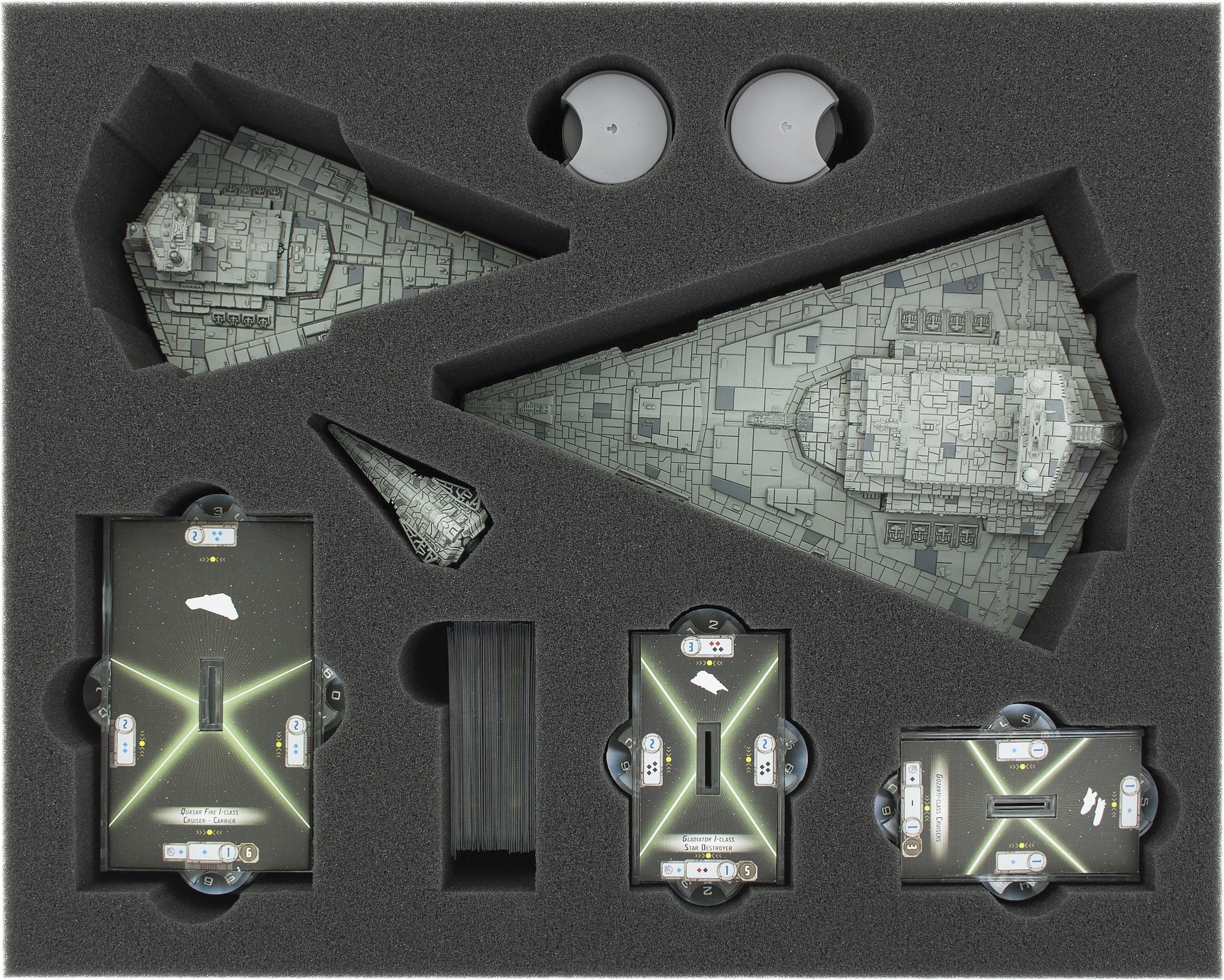 - 1 x 75 mm (2.95 inch) full-size foam tray for Star Wars Armada: Star Destroyer (Item No.:[FSKP075BO])