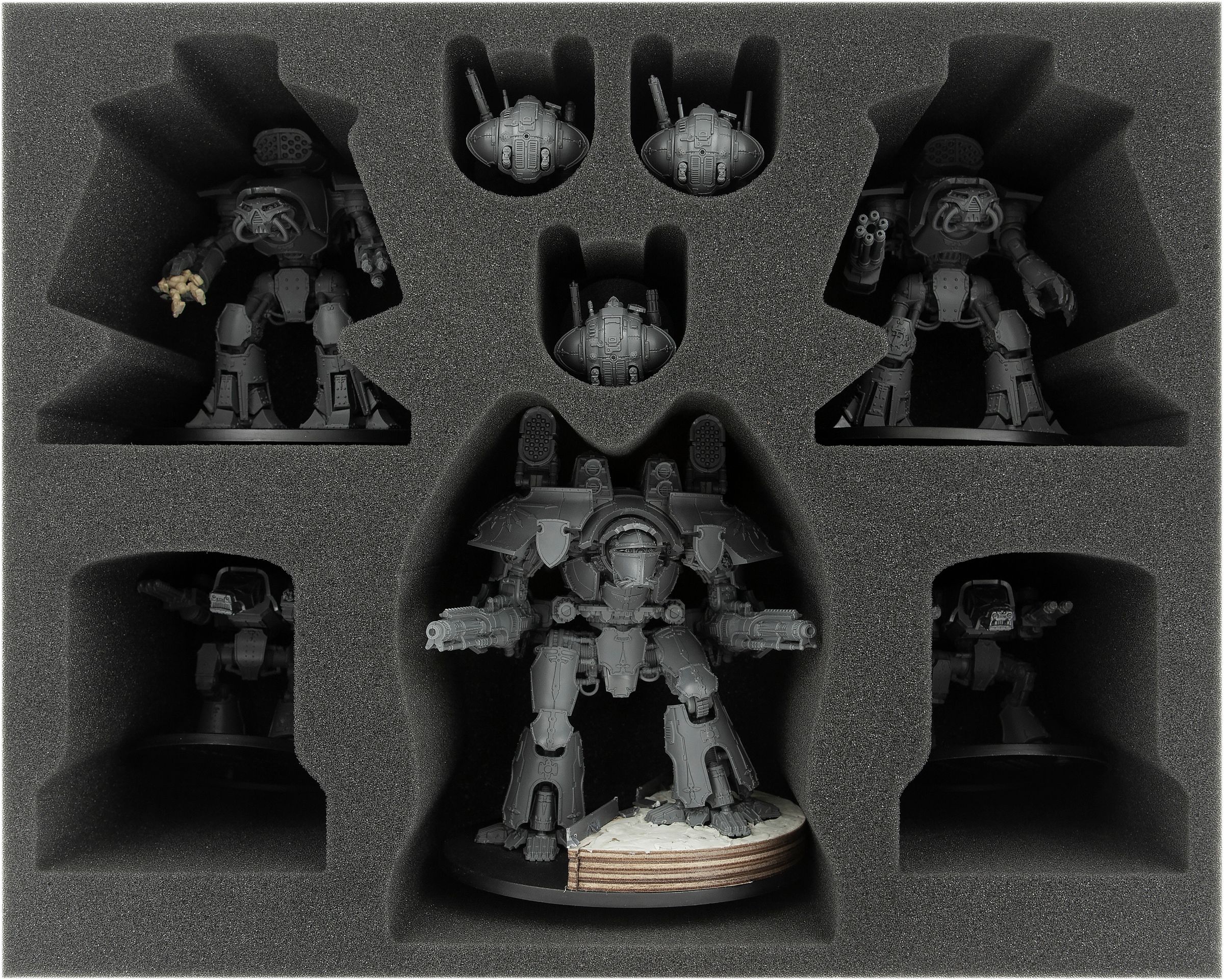The Titans are stored in individual compartments and the soft foam ensures that the miniatures are optimally protected against damage during transport. The colors of painted models are preserved.