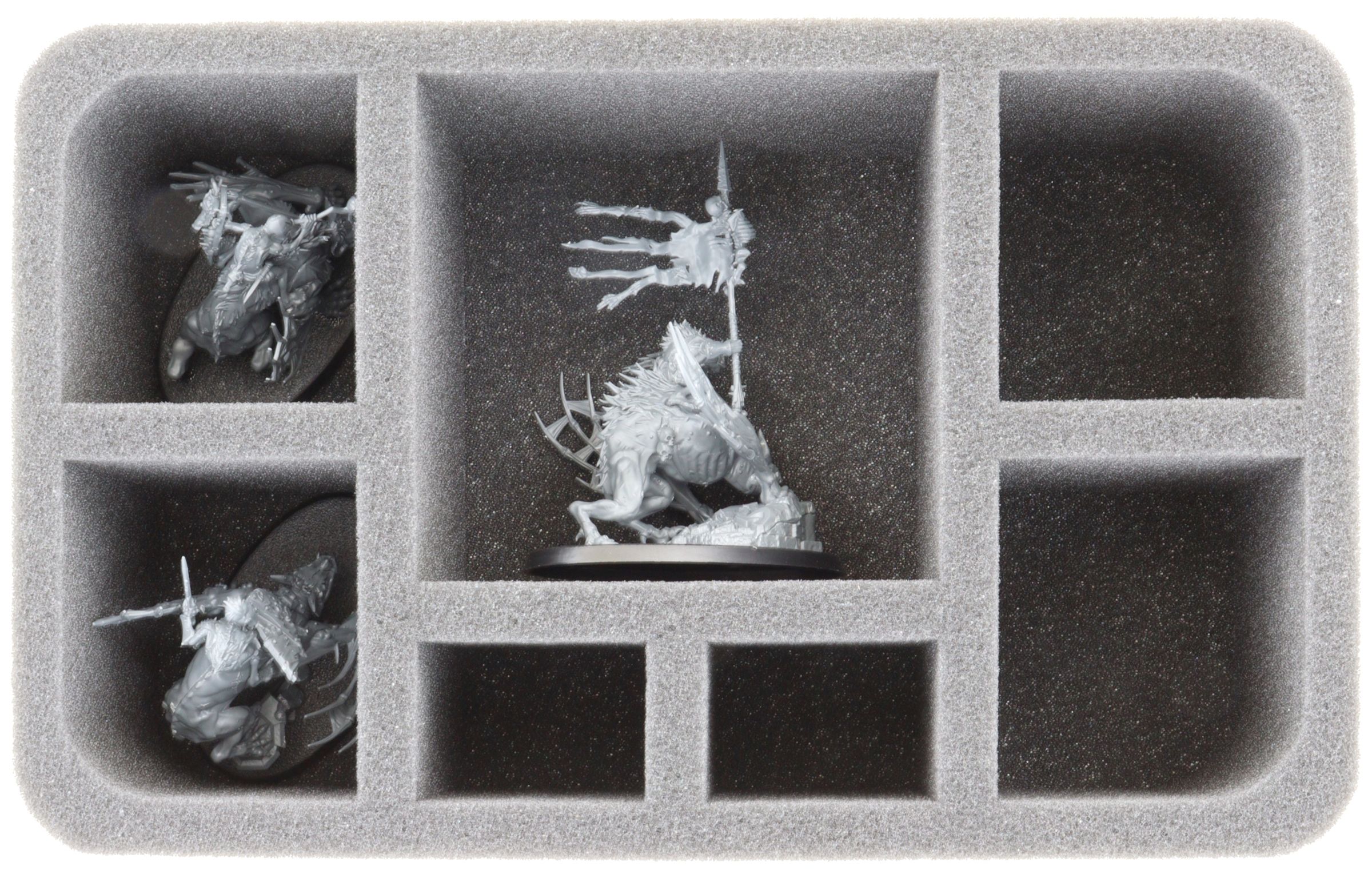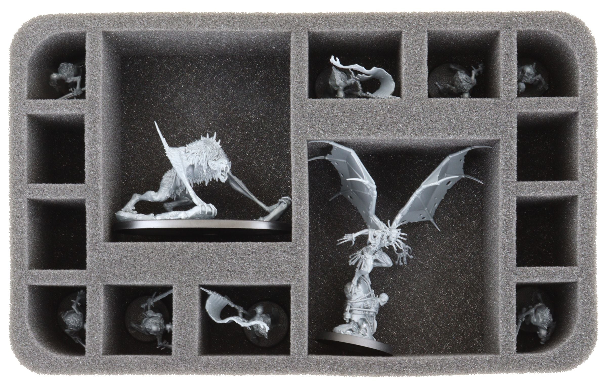 - 1 Half-Size foam insert with 14 compartments for Abhorrant Ghoul Kings, Varghulf Courtiers, Crypt Ghouls, and miniatures with similar dimensions (HS060A075)