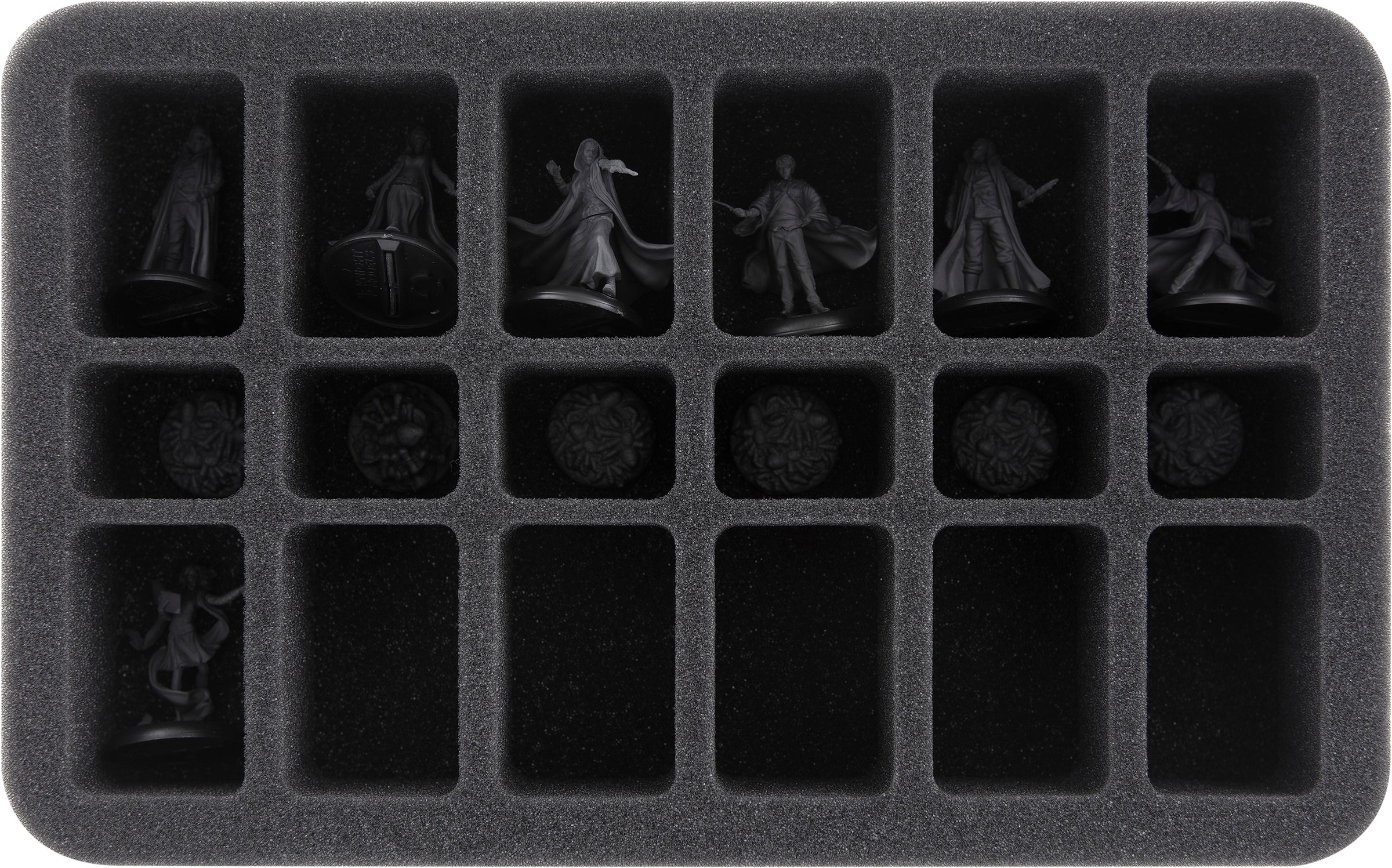 • 1 Half-Size foam tray with 18 compartments for miniatures (HS050BF01BO)