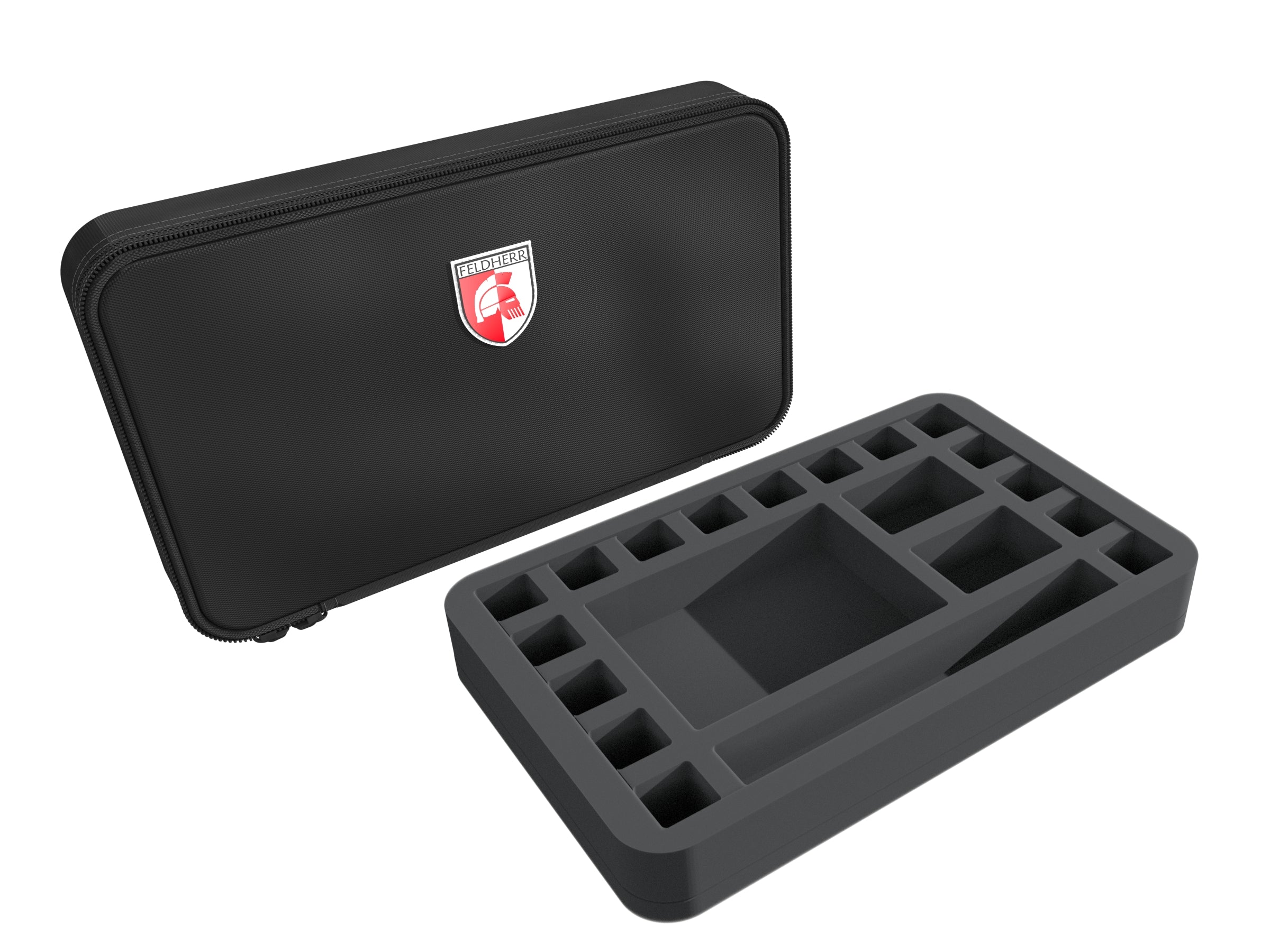 Para una fácil conversión de la bandeja de lanzamiento de dados en una bandeja de espuma Half-Size para guardar el material de juego, se incluye un inserto a juego. Esto encaja exactamente en el gran compartimento de la bandeja y le permite almacenar y transportar todos los accesorios importantes que necesita para el RPG de sobremesa.