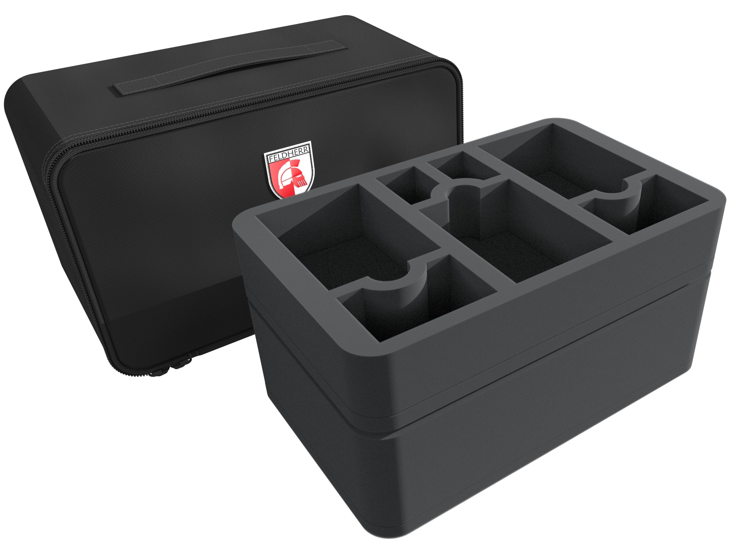 Para que no les pase nada a tus figuras de camino a la próxima pelea callejera, aquí tienes la bolsa MINI PLUS a juego que incluye bandejas de espuma Feldherr personalizadas para proteger tus miniaturas.