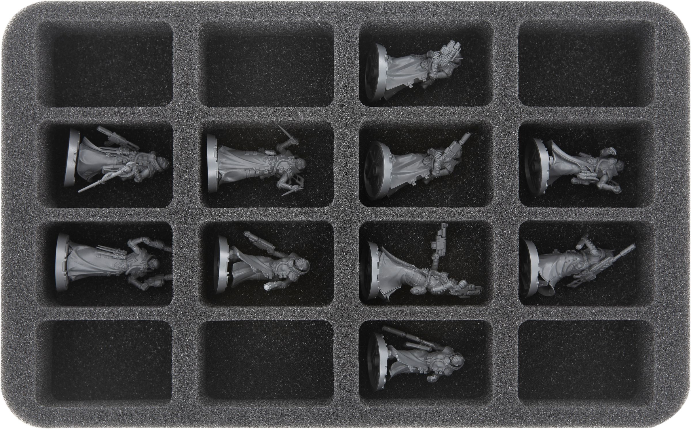 Cada miniatura de tu colección recibe aquí su compartimento a medida. Esto garantiza que tus modelos permanezcan seguros en su sitio durante el transporte. El suave espuma protege las partes sensibles de tus figuras, y los colores del miniaturas pintado están igual de a salvo de la abrasión y los arañazos.