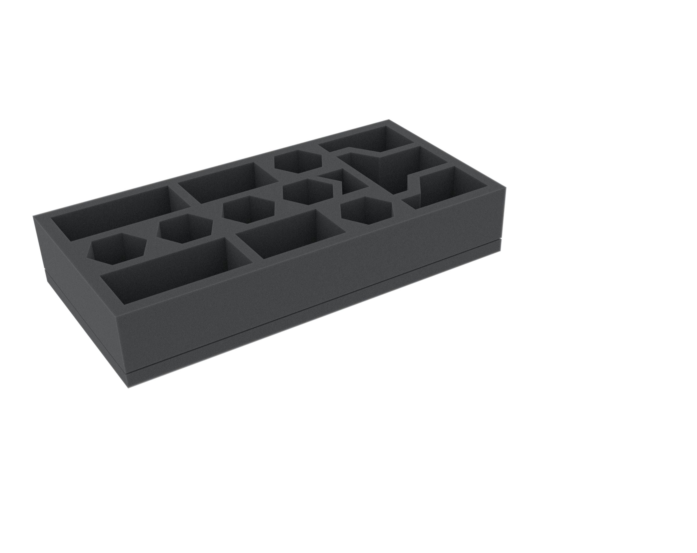 Cover the foam trays with the matching foam topper. Thus, your figures are well protected from all sides, and no miniature can slip out of the compartments during transport.