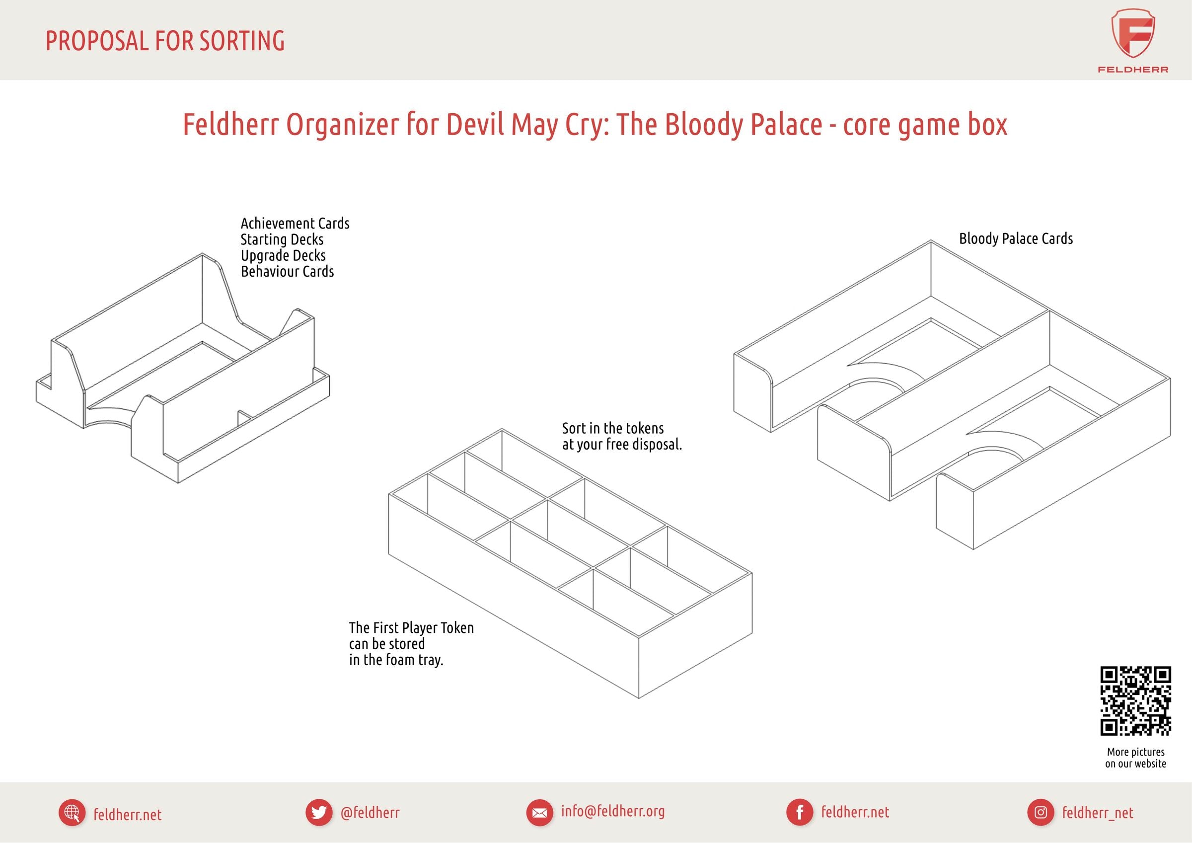 While you explore the Bloody Palace and hunt demons, we take care of the contents and organization of your box. In the foam inserts, you keep your miniatures reliably protected. The game material can be arranged quickly and clearly with the token and card holders. So you save time in the game setup and can put the time gained in the game.