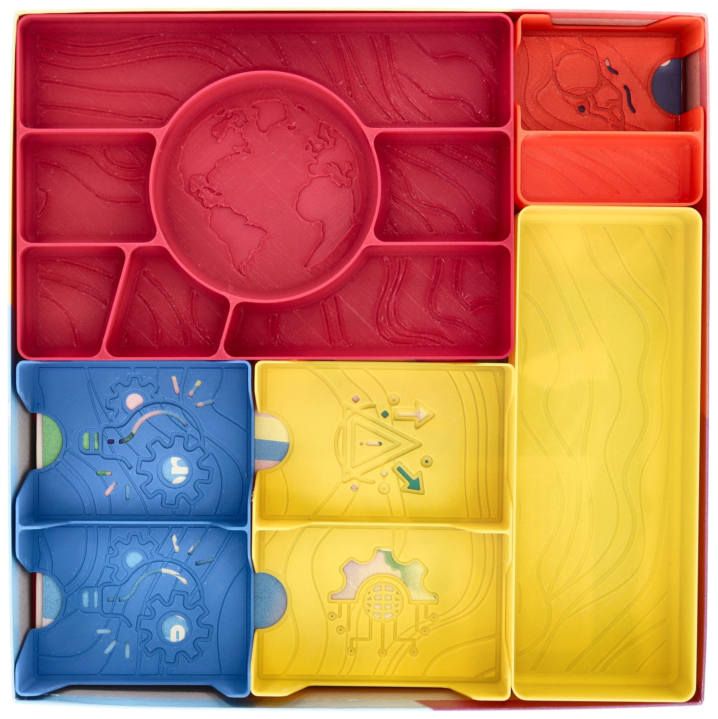 • Custom-designed compartments with symbols matching the components make it easier to sort all the tokens and speed up game setup.