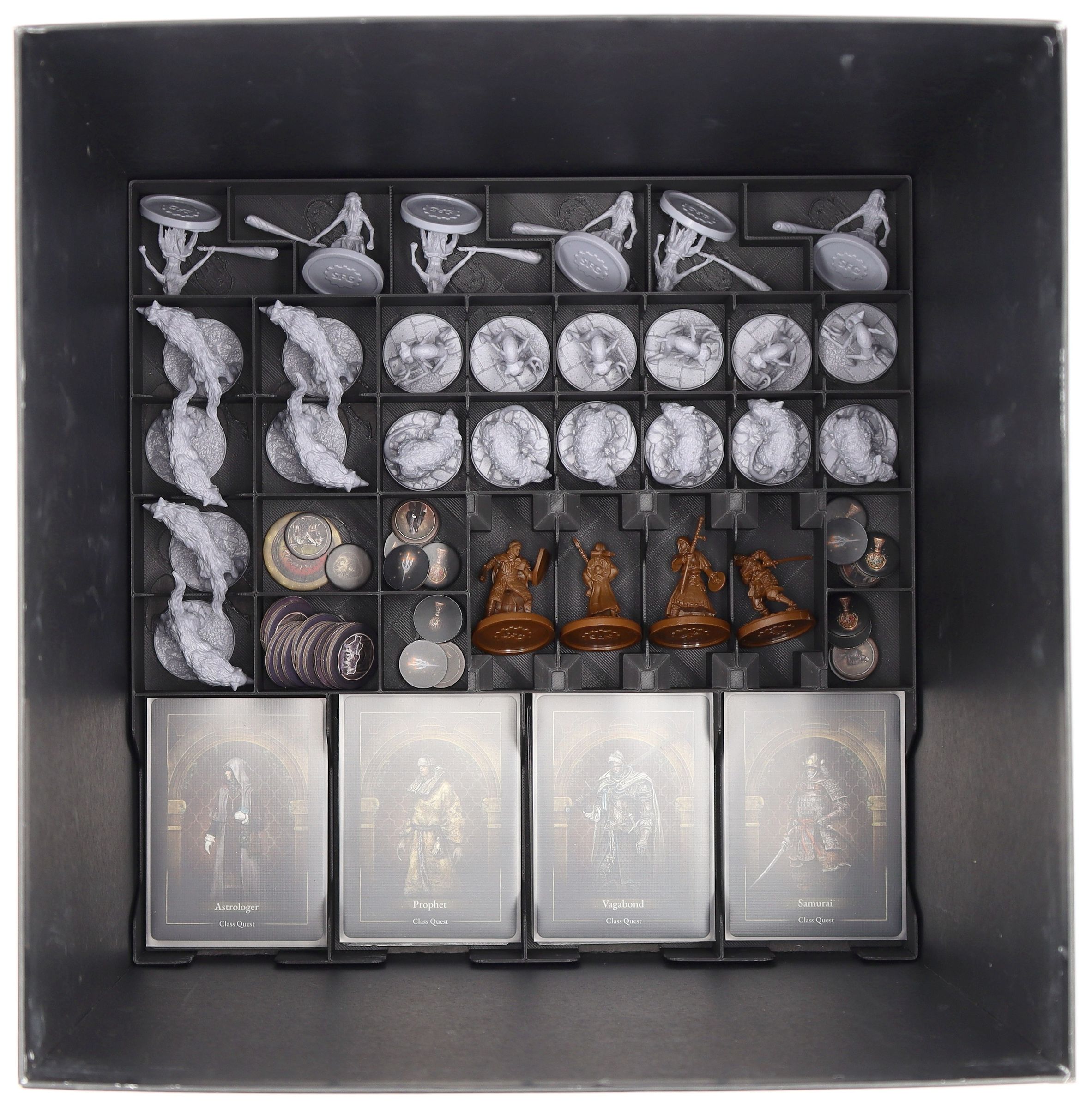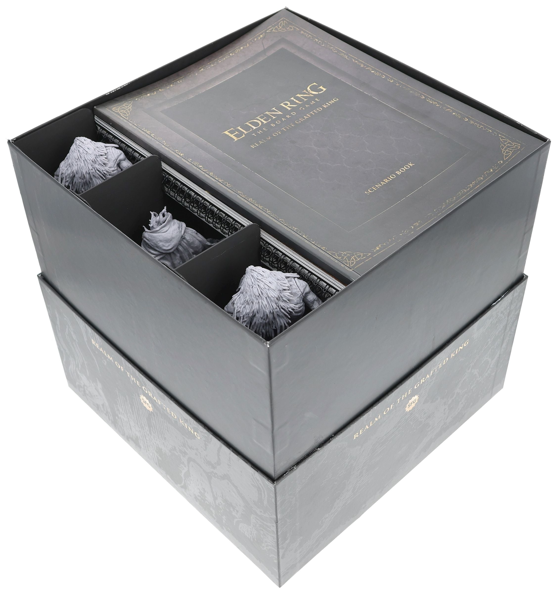 - The sturdy plastic organizer fits perfectly into the board game box of Elden Ring: Realm of the Grafted King (dimensions of the organizer: 283 x 283 x 285 mm)