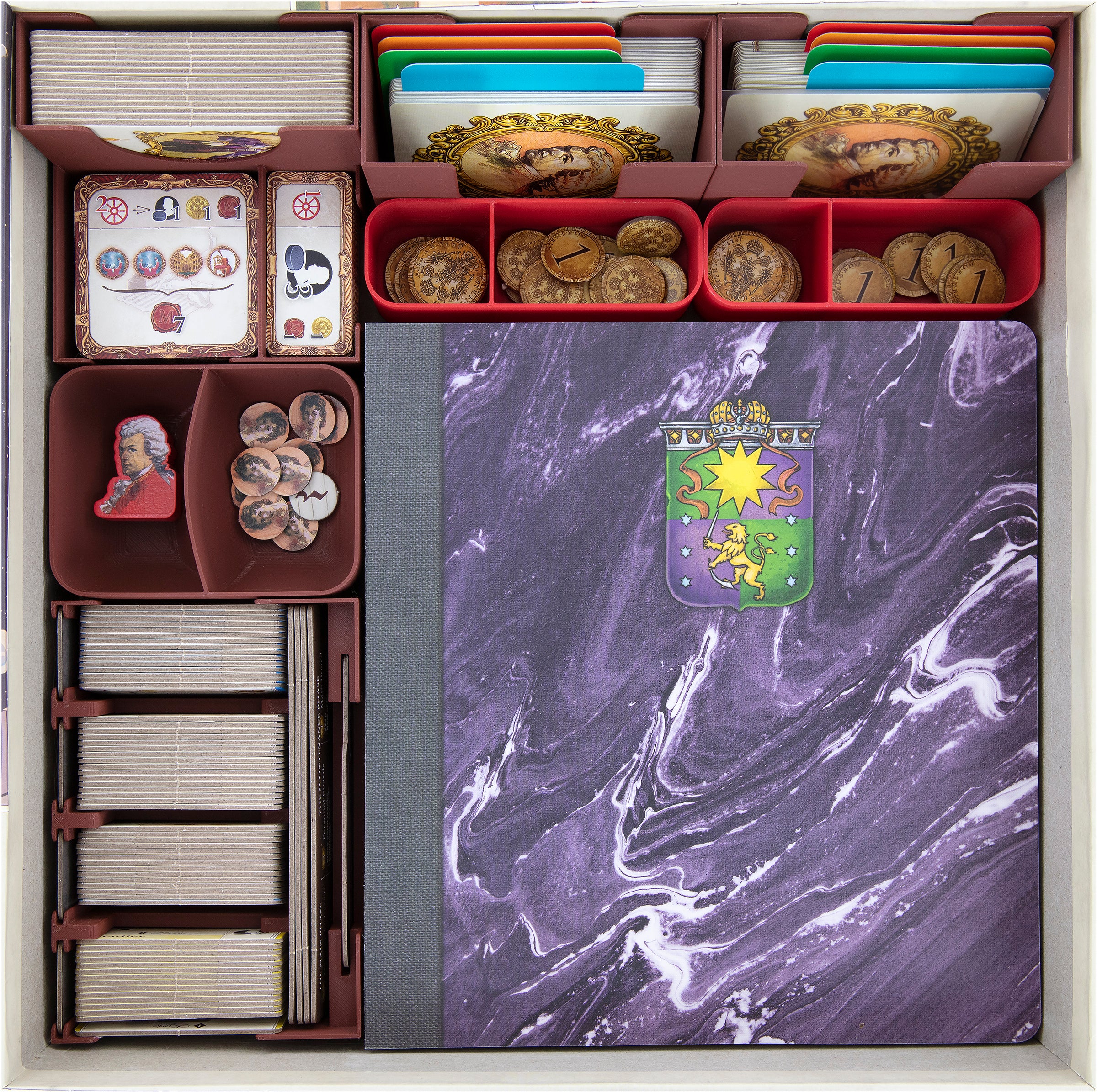 The individually removable inserts not only keep the contents of your board game box under control but also ensure order on the tabletop. Resource trays and coin holders are two times in the set, so players don't have to stretch too far for game material.
