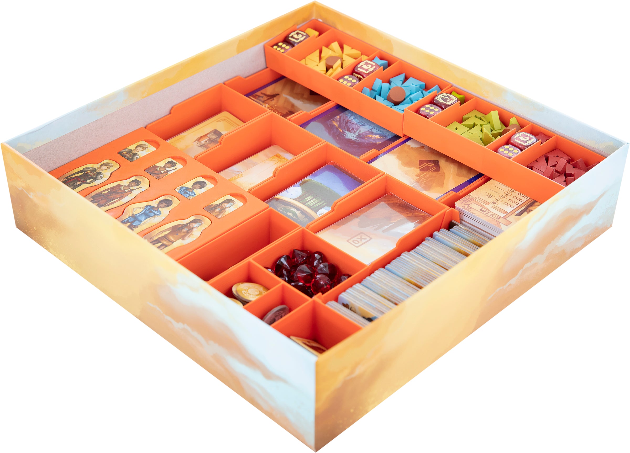 To create an immersive world, the game contains a lot of cards, dice, tokens, and coins. To ensure that you do not lose track of all your game material, this matching Feldherr Organizer is the right choice and fits into the original board game box.