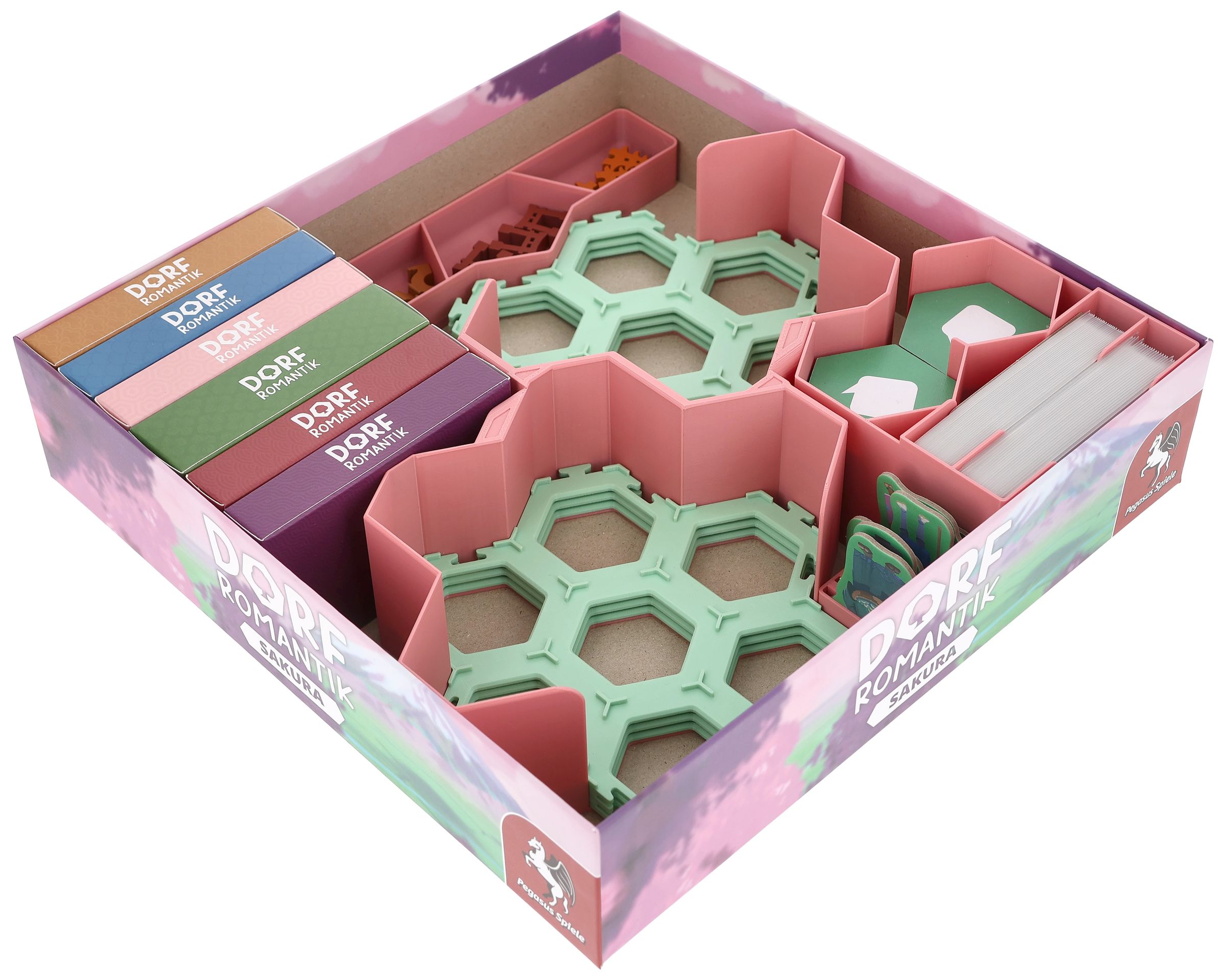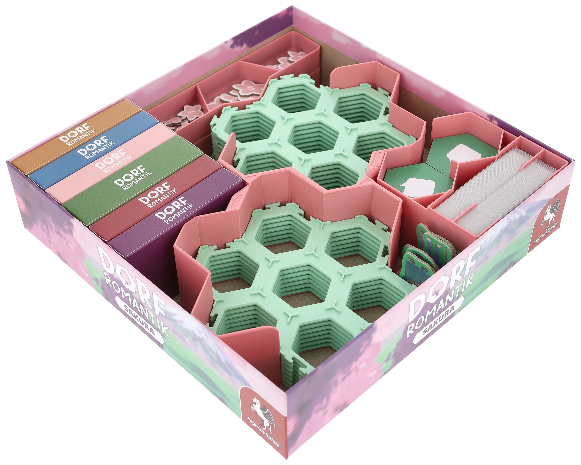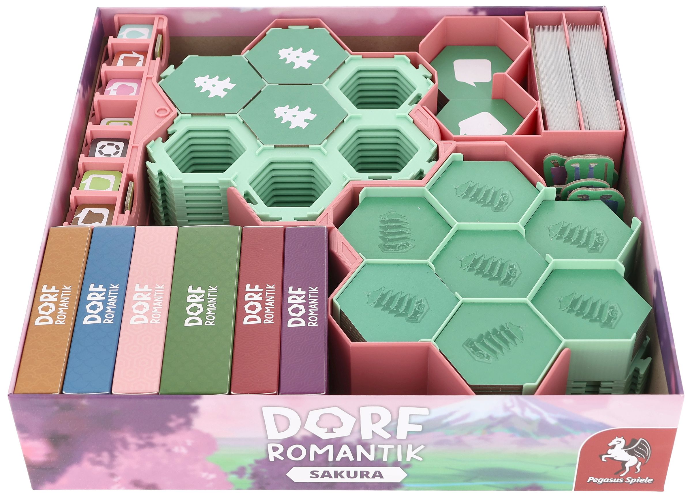- El inserto ofrece espacio para todos los contenidos de la expansión del juego principal "Dorfromantik: Sakura".
