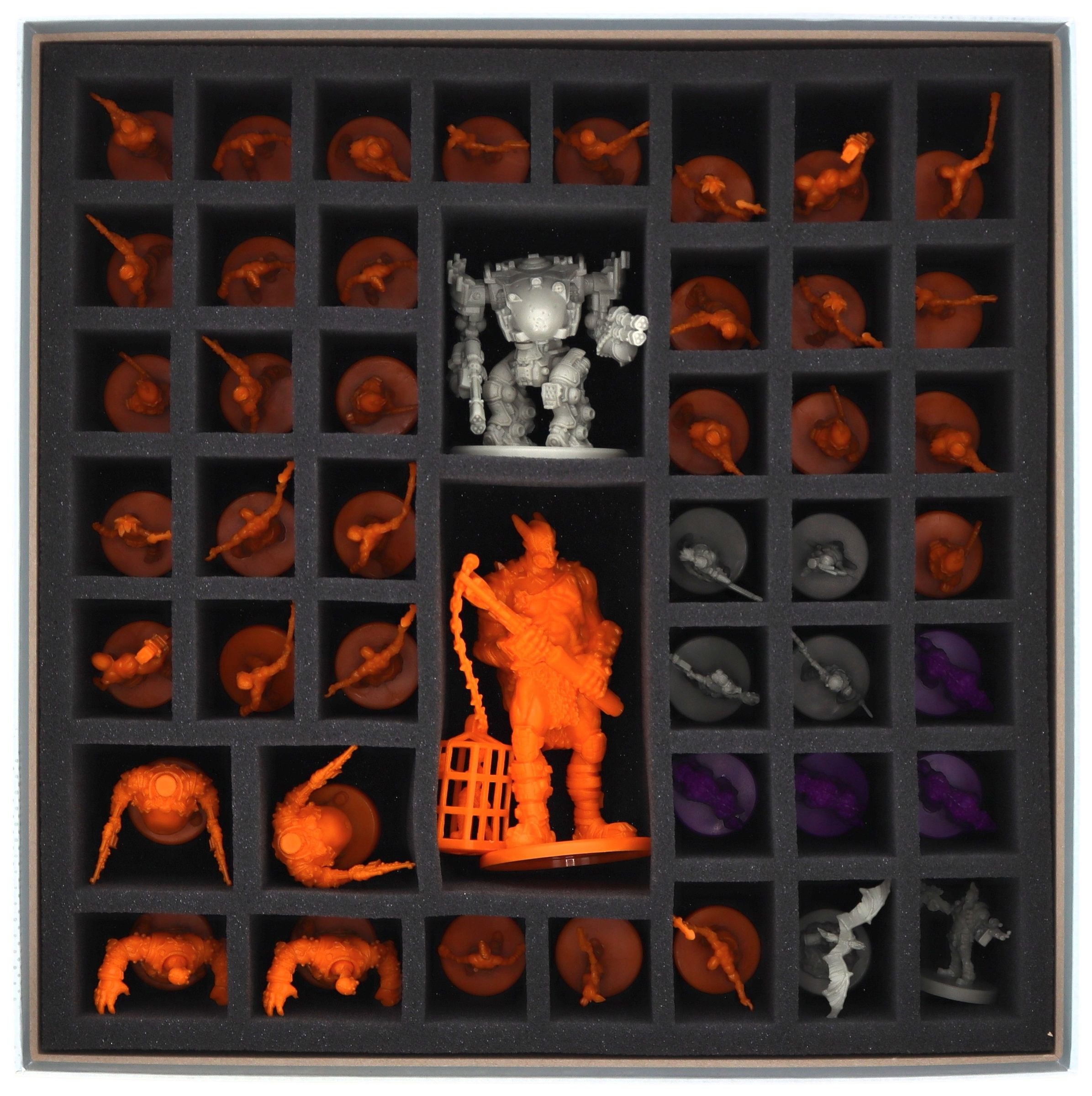 • It provides space for all miniatures and the entire core game's components.