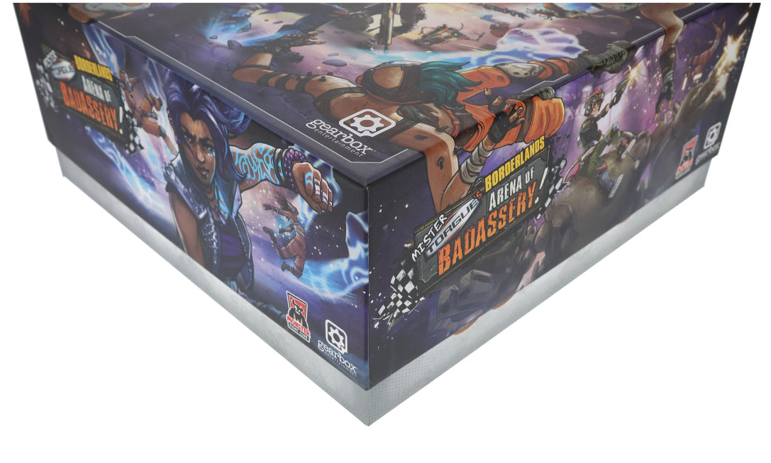 • This set fits exactly into the original Borderlands: Mister Torgue's Arena of Badassery core game box (dimensions of the set: 293 x 293 x 130 mm).