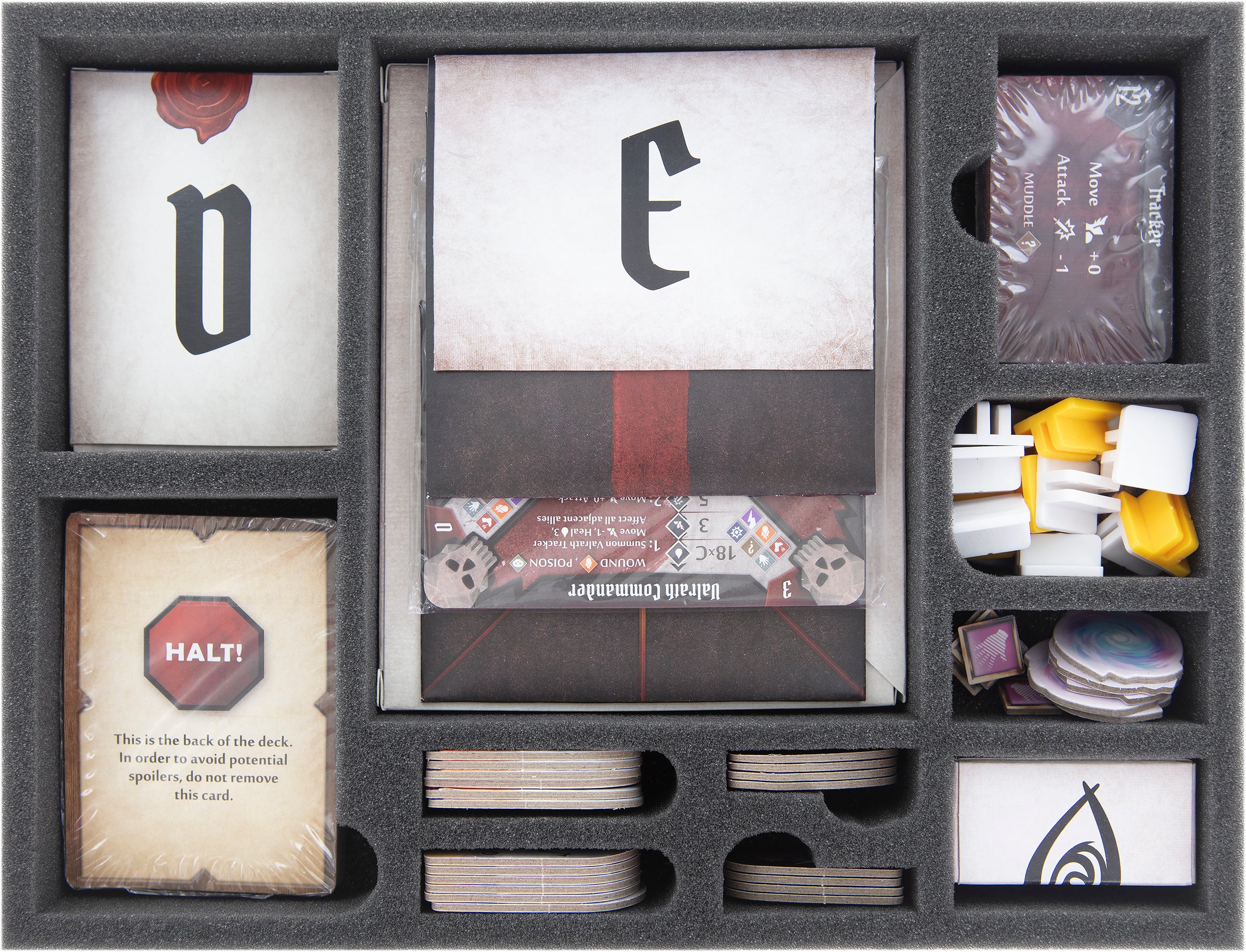 Con "Forgotten Circles", la aventura de Gloomhaven continúa. Para que pueda clasificar y transportar de forma clara y segura los materiales del juego en la caja original, Feldherr tiene este set de espuma para usted.