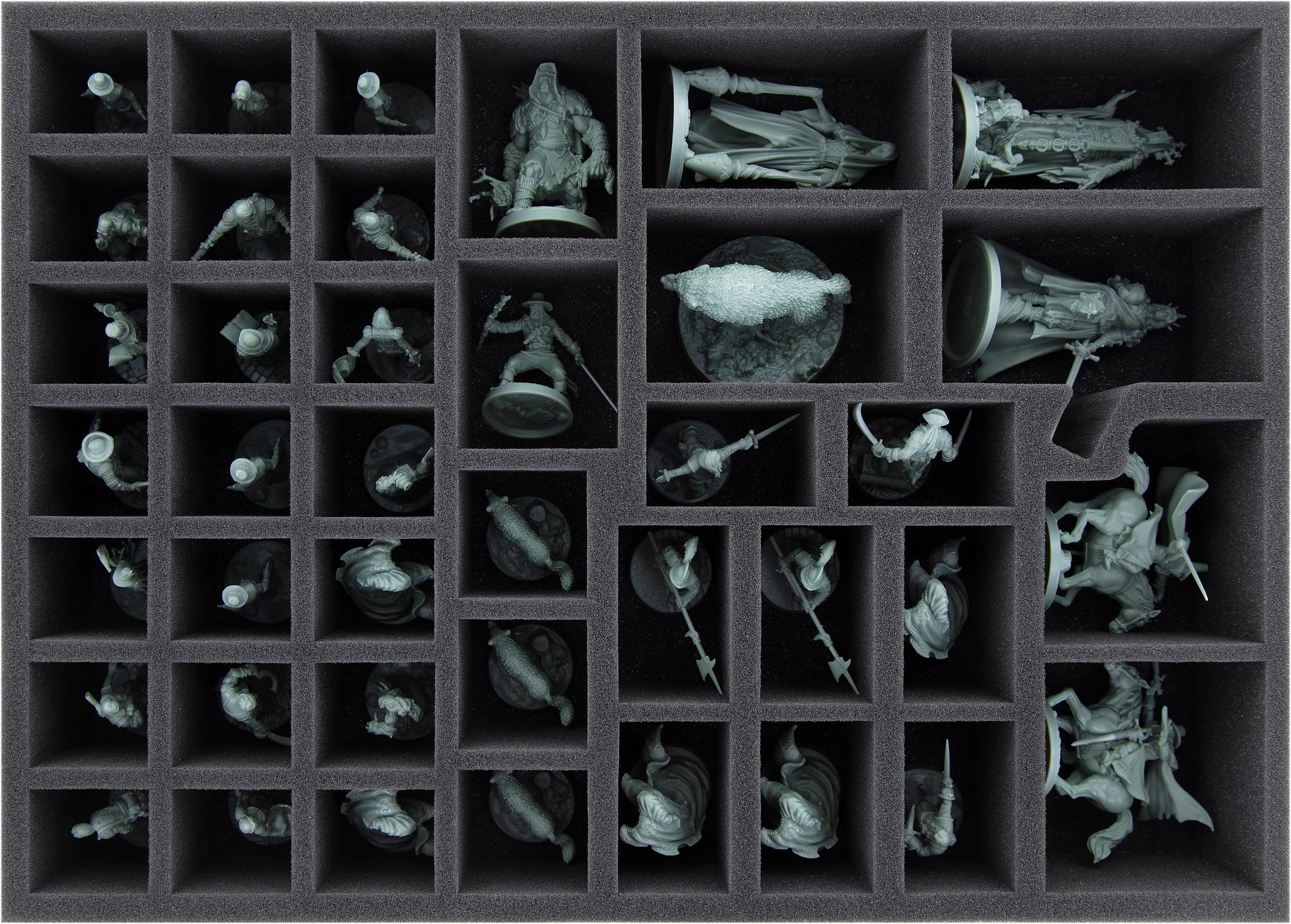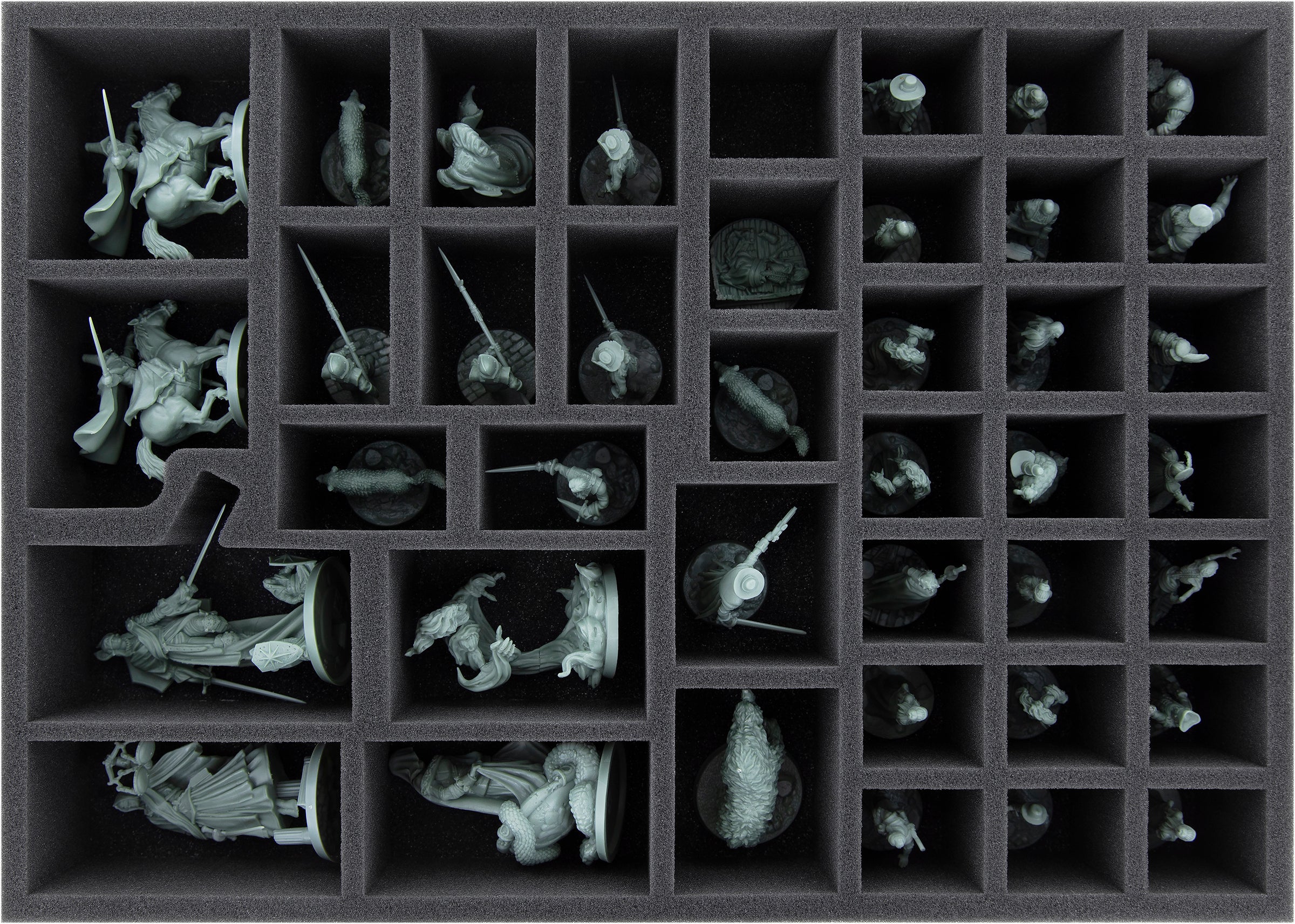 Thanks to the custom-fit cut, your miniatures have a tight fit and can't slip out of place. Finely detailed miniatures like Courage and Darkness remain unharmed, even if the transport is a bit bumpy. The soft, fine-pored foam protects delicate parts from snapping off and the colors of your painted models from scratches and paint abrasion.