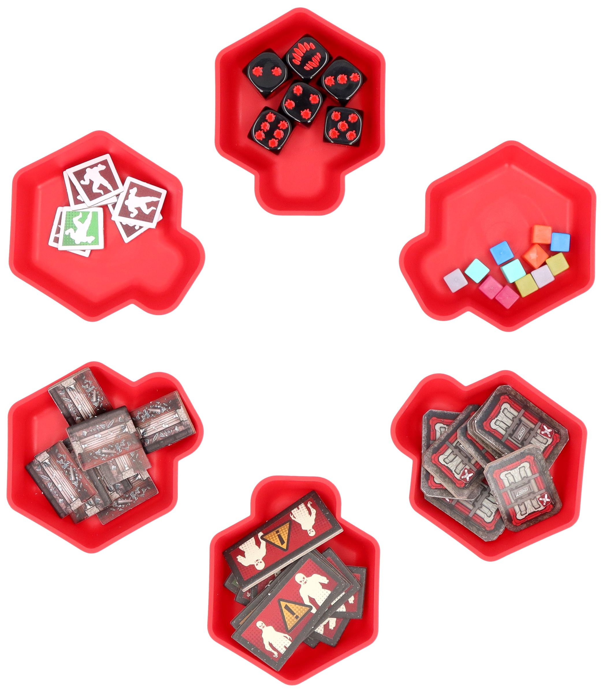 • The SHELL token trays simplify the arrangement of various markers, tokens, dice, and small-sized game material while playing.