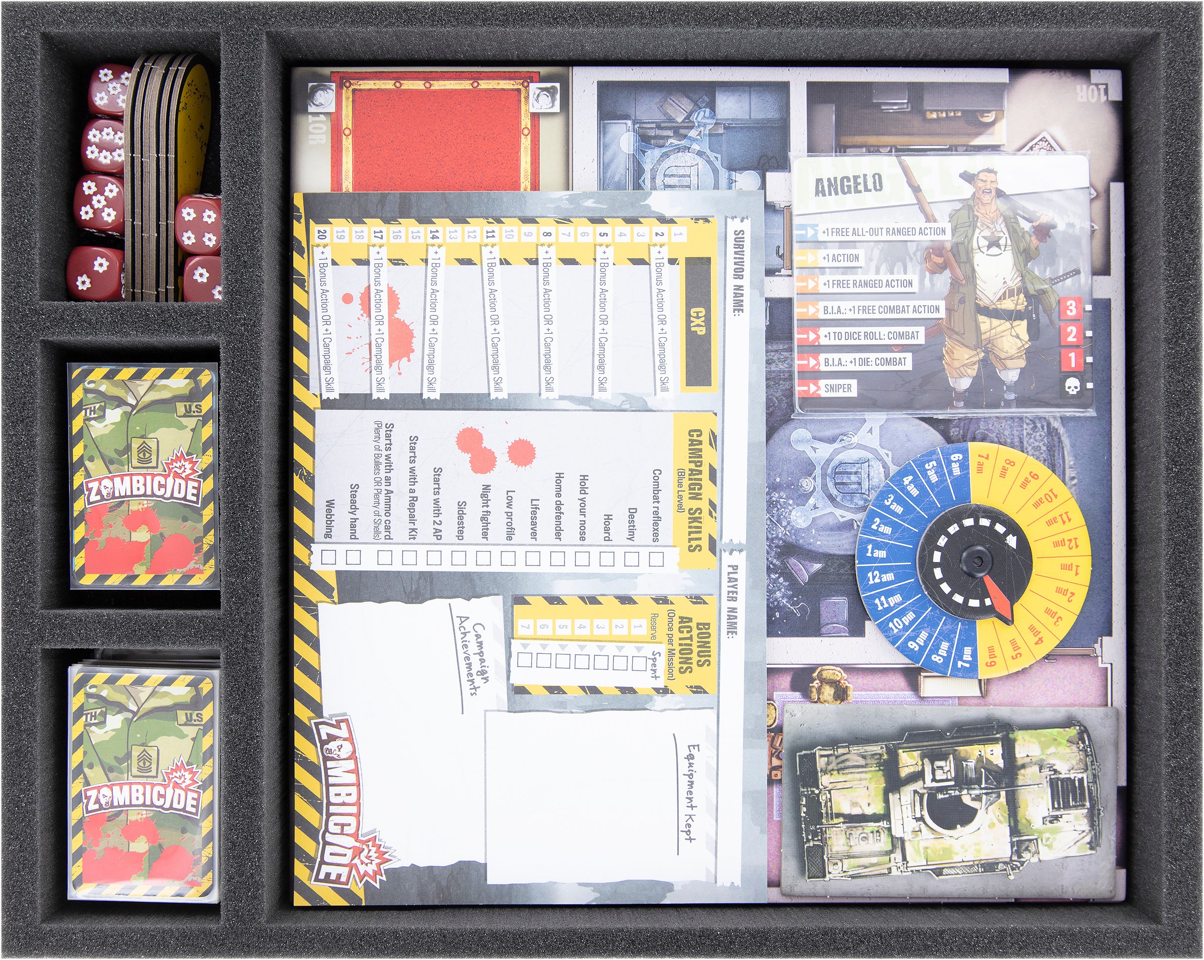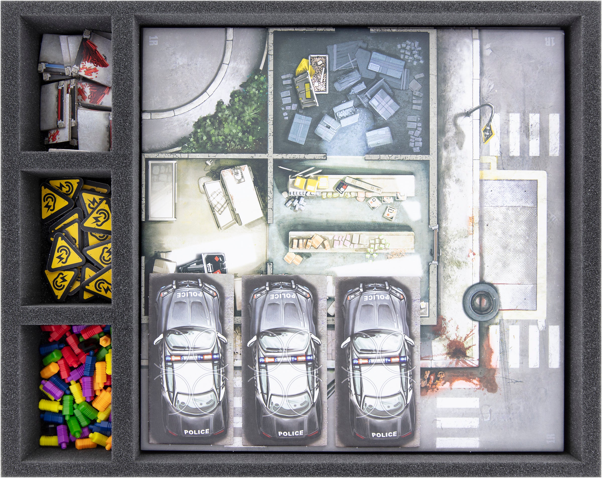Esta bandeja de espuma Full-Size tiene un gran compartimento que contiene hasta 20 baldosas de Zombicide. La espuma protege óptimamente los bordes del desgaste durante el almacenamiento y el transporte.
