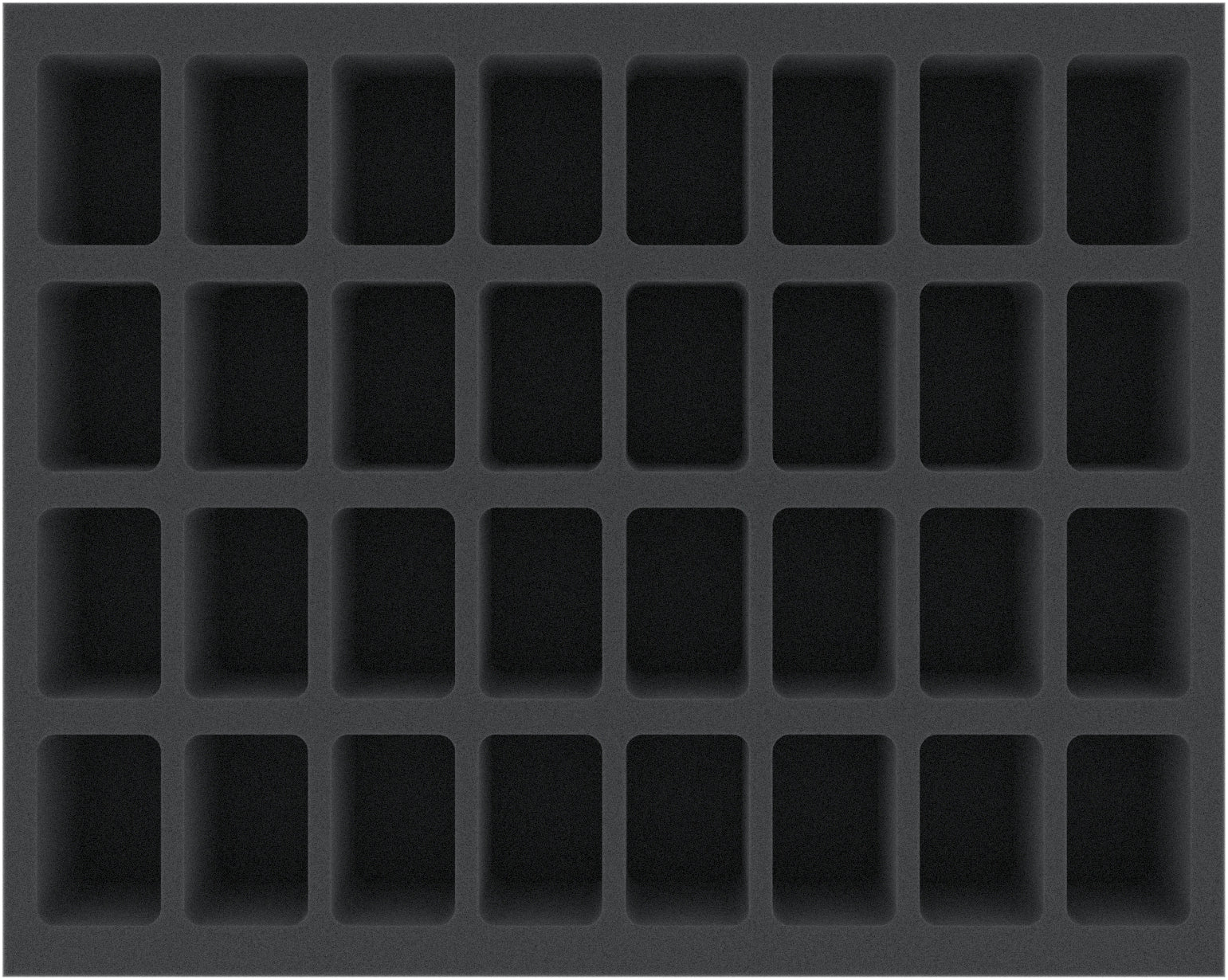 50 mm high Feldherr Full-Size foam insert with 32 compartments. Universal-cut compartments provide optimum protection for various miniatures.